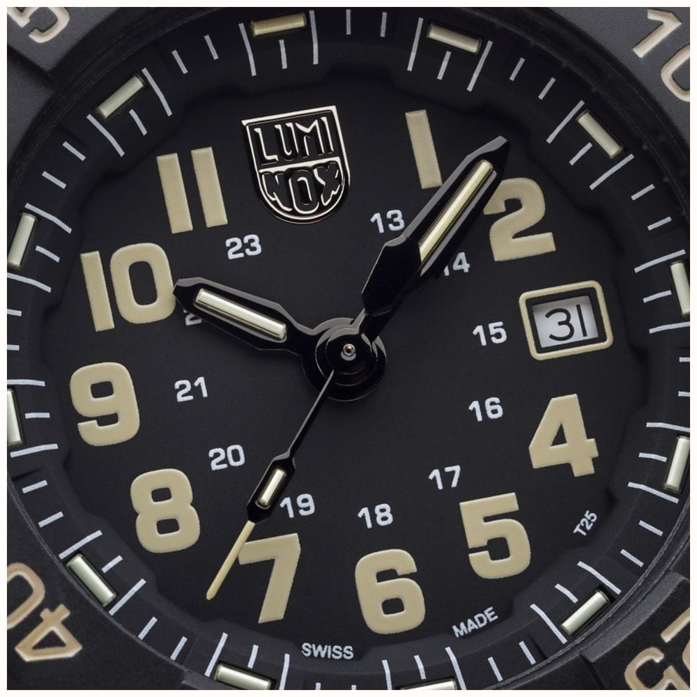 Мужские наручные часы Luminox XS.3510 из коллекции Navy SEAL сочетают в себе спортивный дизайн и надежность швейцарского качества . Модель обладает круглым корпусом диаметром 45 мм, изготовленным из карбонаКарбонОт «carbon», «carbone» - углерод, углепластик - полимерный композиционный материал из переплетённых под определенным углом между собой нитей углеродного волокна, применяется для изготовления лёгких, но прочных деталей. В часах часто используют для украшения циферблатов и ремешков. Так же карбон используется в изготовлении корпусов. Такие корпуса обладают антикоррозионным свойством, не поддаются электромагнитному излучению, обладают повышенной прочностью и противоударностью. (CARBONOX™), что обеспечивает высокую устойчивость к внешним воздействиям при сохранении легкости . Циферблат черного цвета украшен контрастными метками и стрелками с люминесцентным покрытиемЛюминесцентное покрытиеПозволяет считывать показания времени в темноте. Производители наносят на стрелки, часовые индексы, безель или поверхность циферблата светонакопительный состав, дающий холодное свечение., гарантирующим постоянную видимость времени даже в условиях низкой освещенности благодаря системе LLTLLTLLT — это автономный механизм подсветки, основанный на использовании микроскопических газонаполненных элементов. Специальные герметичные капсулы из боросиликатного стекла, интегрированные в циферблат, генерируют свечение без необходимости подключения к внешним источникам энергии. Для их работы не требуется ни дополнительный свет, ни механическое воздействие (например, нажатие кнопки). Свечение возникает благодаря химическому процессу: реакция между тритием, заключенным в капсулах, и люминофорным покрытием создает стабильное автономное освещение. Технология обеспечивает энергетическую независимость и долговечность подсветки. (микрогазовые огни) . Часы оснащены кварцевым механизмом швейцарского производства Ronda 715, обеспечивающим точность хода ±15 секунд в месяц . Защиту циферблата обеспечивает прочное минеральное стеклоМинеральное стеклоМинеральное стекло представляет собой искусственно выращенный минерал кварца. Такое стекло отличается особой устойчивостью к повреждениям и царапинам. Уступает по некоторым качествам сапфировому стеклу. с антибликовым покрытиемАнтибликовое покрытиеСлой оксида металла в 0,13-0,3 микрон, благодаря которому стекло часов не бликует и не отражает свет. Антибликовое покрытие уменьшает отражение света в 10 раз, обеспечивая отличную читаемость показателей циферблата., устойчивое к царапинам и механическим повреждениям . Водонепроницаемость модели достигает 20 атмосфер (200 метров), что делает их подходящими для плавания и активного отдыха на воде, включая дайвинг . Модель также оснащена безелемБезельВнешний ободок, закрепляющий стекло. В спортивных часах так называется поворотное кольцо с делениями на циферблате, выполняет роль таймера – замеряет отрезки времени на шкале. Неподвижный безель – элемент декора. Однонаправленно вращающийся безель на дайверских часах позволяет фиксировать моменты погружения и выныривания на поверхность. с односторонним вращением, что добавляет функциональности при использовании в водных условиях . Ремешок выполнен из черного полиуретана, что обеспечивает комфортное ношение в т