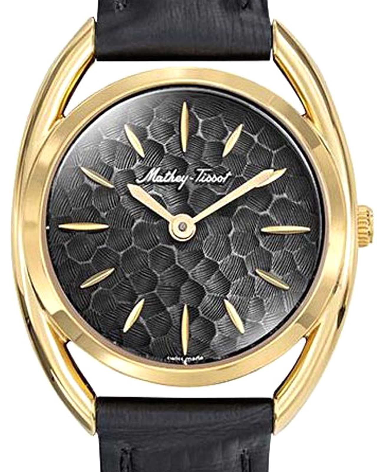 Женские кварцевые часы Mathey-Tissot Saphira D933PLYN — это стильное сочетание элегантности и современного дизайна. Изящный корпус выполнен из стали с PVD-покрытиемPVDУльтратонкое покрытие наносится в технике вакуумного напыления, сочетает в себе нитрид титана особой прочности со слоем золота или оксида хрома. Несёт в себе декоративную или защитную функцию. и прекрасно впишется в ваш исключительный стиль. Изысканный циферблат с метками придает модели особый блеск и защищен минеральным стекломМинеральное стеклоМинеральное стекло представляет собой искусственно выращенный минерал кварца. Такое стекло отличается особой устойчивостью к повреждениям и царапинам. Уступает по некоторым качествам сапфировому стеклу., обеспечивающим устойчивость к царапинам. Циферблат украшен декоративным узором. Мечевидные стрелки в стиле Sword с люминесцентным покрытиемЛюминесцентное покрытиеПозволяет считывать показания времени в темноте. Производители наносят на стрелки, часовые индексы, безель или поверхность циферблата светонакопительный состав, дающий холодное свечение., которое светится в темноте после непродолжительной зарядки на свету. Часы оснащены надежным кварцевым механизмом. Кожаный ремешок на стандартной застёжке гарантирует комфортное и безопасное ношение. Класс водозащиты: 50 метров позволит защитить корпус от случайных брызг или капель дождя. Mathey-Tissot  — отличный выбор для тех, кто ценит утонченность и качество.