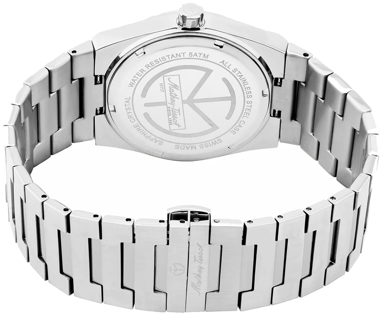 Мужские кварцевые часы Mathey-Tissot Zoltan H117AS — это стильное сочетание элегантности и современного дизайна. Изящный корпус выполнен из нержавеющей стали, диаметром 42 мм, что придаст образу элегантности и надежности. Изысканный циферблат с метками в виде штрихов придает модели особый блеск. Циферблат защищен сапфировым стекломСапфировое стеклоПрочный и надёжный материал из кристалла сапфира синтетического происхождения, характеризующийся особой твёрдостью и устойчивостью к царапинам и повреждениям., обеспечивающий устойчивость к царапинам. Стрелки и метки с люминесцентным покрытиемЛюминесцентное покрытиеПозволяет считывать показания времени в темноте. Производители наносят на стрелки, часовые индексы, безель или поверхность циферблата светонакопительный состав, дающий холодное свечение.. Окошко даты находится в положении 3 часа. Часы оснащены надежным кварцевым механизмом. Стальной браслет на застёжке-бабочке с кнопкамиЗастёжка "бабочка"Такой вид застёжки дополняется предохранителями, помогающими избежать случайного раскрытия браслета. Обладают изящным исполнением. , гарантирует комфортное и безопасное ношение. Класс водозащиты: 50 метров позволит защитить корпус от случайных брызг или капель дождя. Mathey-Tissot  — отличный выбор для тех, кто ценит утонченность и качество.