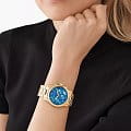 Женские часы-хронографХронографФункция позволяет измерять отрезки времени с особой точностью: часы, минуты, секунды. Верным признаком хронографа является наличие на циферблате 3 дополнительных окошек-счётчиков. Michael Kors Runway MK7353, кварцевый механизм с высокой точностью. Минеральное стеклоМинеральное стеклоМинеральное стекло представляет собой искусственно выращенный минерал кварца. Такое стекло отличается особой устойчивостью к повреждениям и царапинам. Уступает по некоторым качествам сапфировому стеклу. устойчивое к появлению царапин, обладающее высокой прозрачностью. Корпус и браслет изготовлены из нержавеющей стали c PVDPVDУльтратонкое покрытие наносится в технике вакуумного напыления, сочетает в себе нитрид титана особой прочности со слоем золота или оксида хрома. Несёт в себе декоративную или защитную функцию. покрытием. На циферблате три дополнительных индикатора, окошко даты. Стрелки с люминесцентным покрытиемЛюминесцентное покрытиеПозволяет считывать показания времени в темноте. Производители наносят на стрелки, часовые индексы, безель или поверхность циферблата светонакопительный состав, дающий холодное свечение.. Класс водозащиты: 100 метров, позволит плавать, нырять и заниматься другими водными видами спорта. Стальной на раскладной застёжкеРаскладная застёжкаТакой тип застёжки используется только на браслетах из металла. Она никогда не раскрывается полностью, происходит разделение на 2 и более частей. Раскладывающая застёжка снизит вероятность потери часов к минимуму..