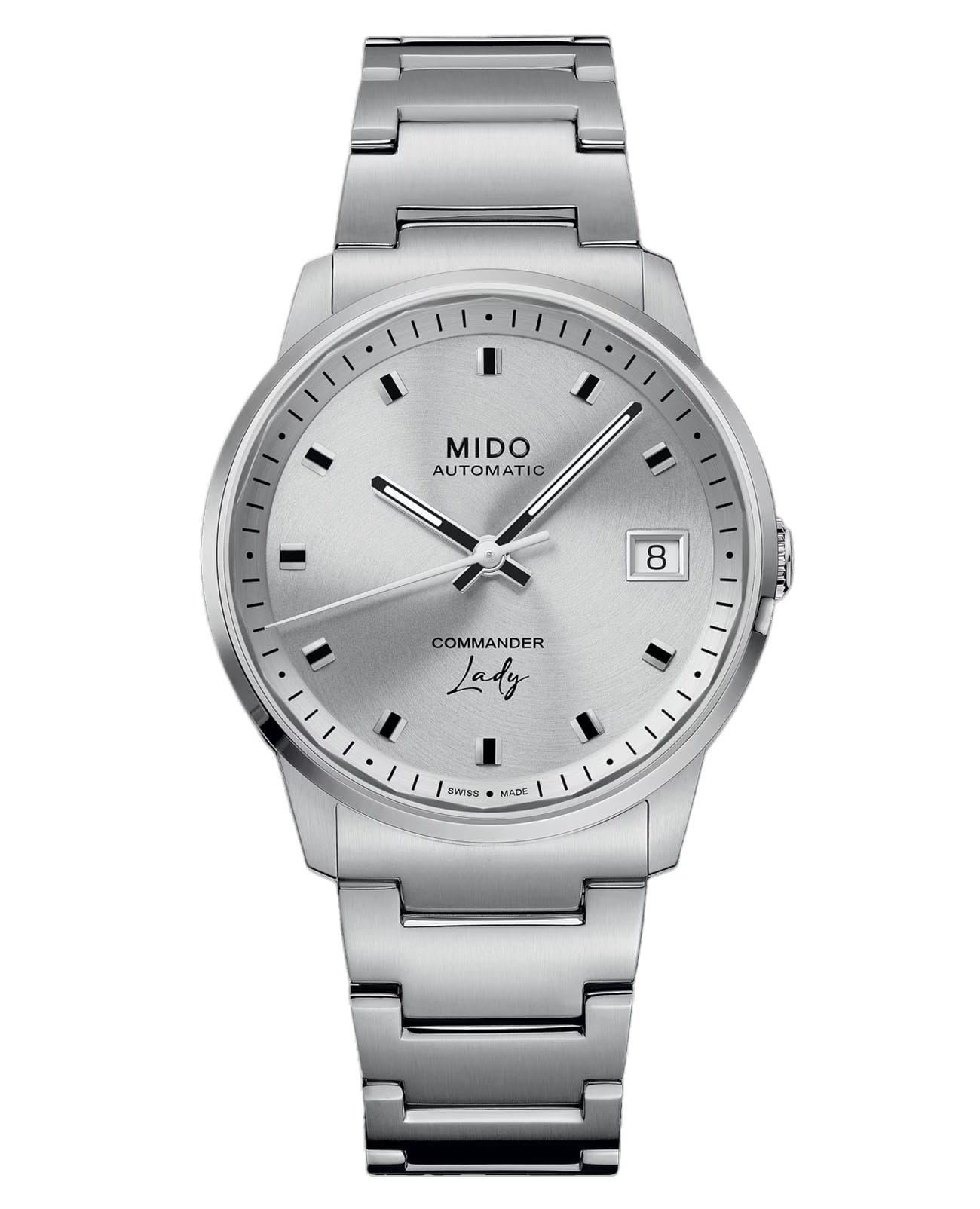 Изысканные и неброские, новые швейцарские механические часы для женщин Mido Commander Lady M021.207.11.031.00, механический механизм (автоматический калибр) с высокой точностью. Сапфировое стеклоСапфировое стеклоПрочный и надёжный материал из кристалла сапфира синтетического происхождения, характеризующийся особой твёрдостью и устойчивостью к царапинам и повреждениям. устойчивое к появлению царапин, обладающее высокой прозрачностью. Идеальный круглый корпус, открывающийся на циферблат, тонкий безель и неброская заводная головка, традиционные стрелки и индексы, превосходный швейцарский автоматический калибр с высокотехнологичной балансировочной пружиной: Commander поражает в этой женской версии. Стрелки с люминесцентным покрытиемЛюминесцентное покрытиеПозволяет считывать показания времени в темноте. Производители наносят на стрелки, часовые индексы, безель или поверхность циферблата светонакопительный состав, дающий холодное свечение.. Окошко даты в положении 3 часов. Класс водозащиты: 50 метров, позволит защитить корпус от случайных брызг или капель дождя. Стальной браслет на раскладной застёжкеРаскладная застёжкаТакой тип застёжки используется только на браслетах из металла. Она никогда не раскрывается полностью, происходит разделение на 2 и более частей. Раскладывающая застёжка снизит вероятность потери часов к минимуму..