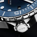 Часы MIDO Ocean Star 600 Chronometer (артикул M026.608.11.041.01) — высокотехнологичная модель, созданная для исследования океанских глубин. Корпус диаметром 43,5 мм выполнен из нержавеющей стали с керамическим безелем, заполненным люминесцентным составом Super-LumiNova® Grade XЛюминесцентное покрытиеПозволяет считывать показания времени в темноте. Производители наносят на стрелки, часовые индексы, безель или поверхность циферблата светонакопительный состав, дающий холодное свечение., и водозащитой до 60 бар (600 метров). Оснащён гелиевым клапаном. Синий циферблат с накладными часовыми метками, покрытыми Super-LumiNova®Люминесцентное покрытиеПозволяет считывать показания времени в темноте. Производители наносят на стрелки, часовые индексы, безель или поверхность циферблата светонакопительный состав, дающий холодное свечение., защищён сапфировым стекломСапфировое стеклоПрочный и надёжный материал из кристалла сапфира синтетического происхождения, характеризующийся особой твёрдостью и устойчивостью к царапинам и повреждениям. с двусторонним антибликовым покрытием.
