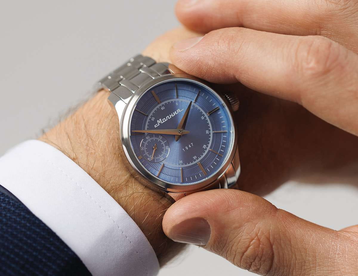 Мужские механические часы с ручным подзаводом — это аксессуар от легендарного бренда «МОЛНИЯ», созданный на Челябинском часовом заводе. Корпус диаметром 41 мм выполнен из нержавеющей стали 316L с зеркальной полировкой. БезельБезельВнешний ободок, закрепляющий стекло. В спортивных часах так называется поворотное кольцо с делениями на циферблате, выполняет роль таймера – замеряет отрезки времени на шкале. Неподвижный безель – элемент декора. Однонаправленно вращающийся безель на дайверских часах позволяет фиксировать моменты погружения и выныривания на поверхность. также выполнен из стали с зеркальной отделкой. Циферблат голубого цвета оформлен индексами и стрелками. Малая секундная стрелка вынесена на позицию 9 часов. Циферблат защищён сапфировым стекломСапфировое стеклоПрочный и надёжный материал из кристалла сапфира синтетического происхождения, характеризующийся особой твёрдостью и устойчивостью к царапинам и повреждениям. толщиной 2 мм. Механизм — мануфактурный калибр 3603, собранный вручную, с запасом хода до 40 часов. Прозрачная задняя крышка позволяет наблюдать за работой механизма. Часы оснащены стальным браслетом с раскладной застёжкойРаскладная застёжкаТакой тип застёжки используется только на браслетах из металла. Она никогда не раскрывается полностью, происходит разделение на 2 и более частей. Раскладывающая застёжка снизит вероятность потери часов к минимуму. с кнопочным открытием и системой быстрой замены. Водонепроницаемость 50 м позволяет использовать часы в повседневных условиях. Идеальный выбор для тех, кто ценит российское качество и традиции.