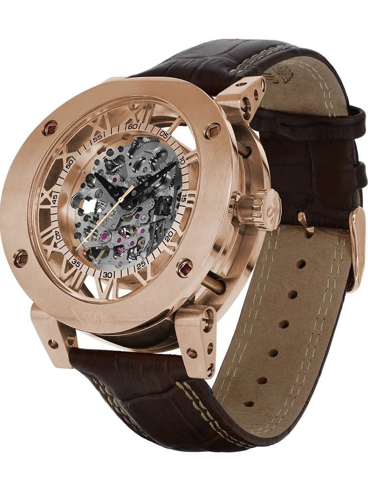Модель Нестеров H2644F52-13RG — это элегантные мужские часы, сочетающие в себе классический дизайн и надёжность. Корпус диаметром 46 мм выполнен из нержавеющей стали с PVD-покрытиемPVDУльтратонкое покрытие наносится в технике вакуумного напыления, сочетает в себе нитрид титана особой прочности со слоем золота или оксида хрома. Несёт в себе декоративную или защитную функцию. в золотистом цвете, подчёркивая прочность и изысканность конструкции. Скелетонизированный циферблат с римскими цифрами и стрелками, обеспечивает отличную читаемость в любых условиях.