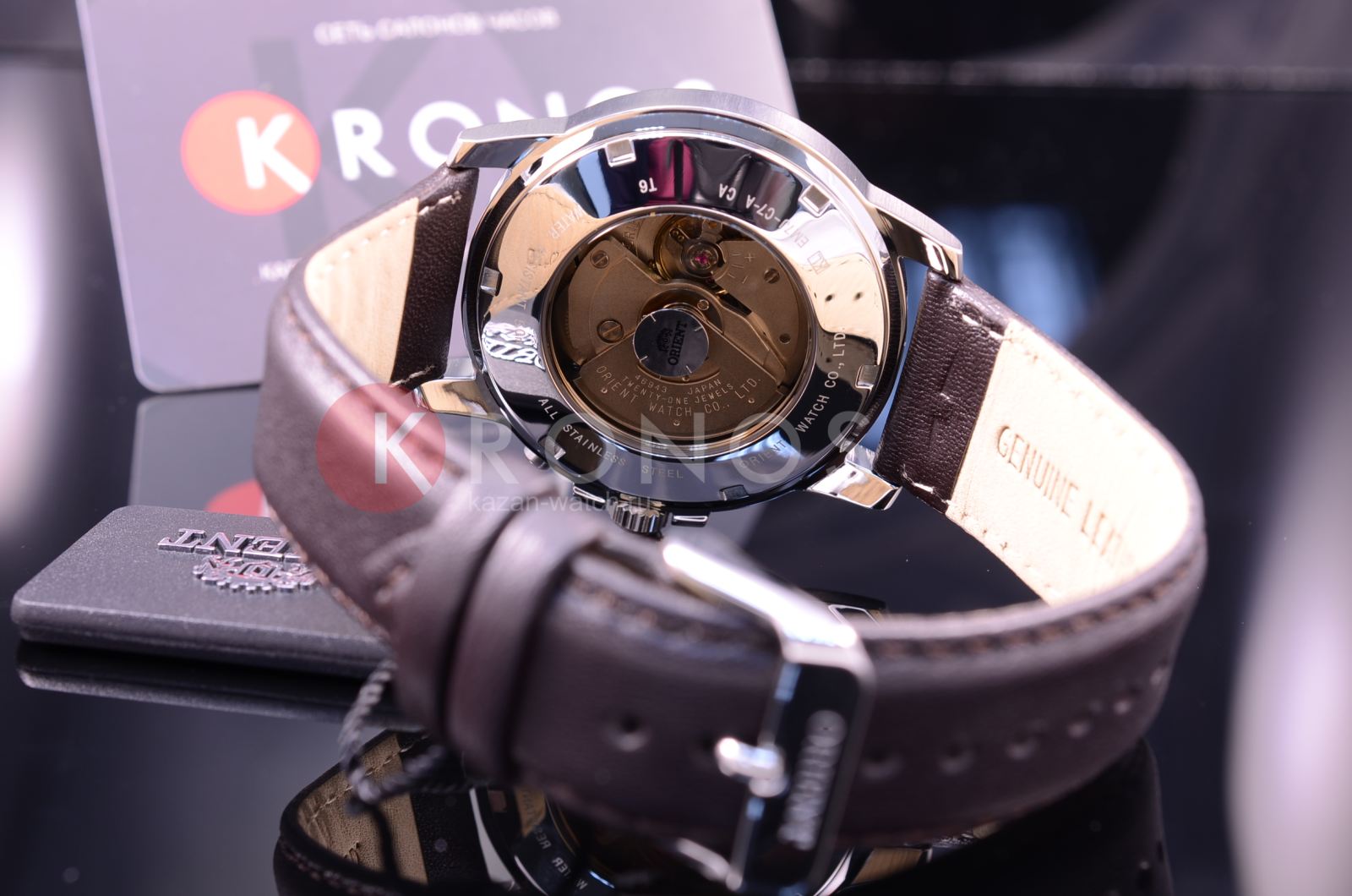 Аксессуар отличается практичным исполнением, крупной индикацией времени, классическим обликом. Японский автоматический калибр с номером 46943 сохраняет запас хода до 40 часов. Скелетонизированная задняя крышка. Кожаный ремешок. Заводная головка с системой защиты. Отображение числа, дня недели.
