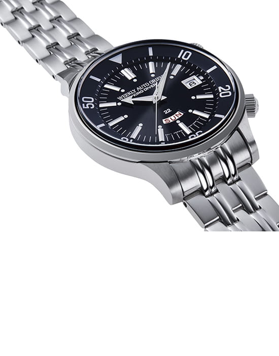 В честь 70-летнего юбилея ORIENT запускает коллекцию Revival, в которую входит возрожденная модель Weekly Auto King Diver, впервые выпущенная в 1965 году. С тех пор оригинальные часы King Diver стали настоящей классикой и основой для последующих моделей часов ORIENT в дайверском стиле. Новая возрожденная модель сохраняет дизайн оригинала: логотип Weekly Auto ORIENT King Diver, часовая стрелка в форме наконечника стрелы, метки циферблата – объемные индексы, индикатор дня недели, размещенный на циферблате в положении 6 часов, отдельная заводная головка для вращающегося внутреннего безеля и прочие элементы дизайна. Но, в отличие от оригинальных часов, водостойкость новой модели увеличена до 20 бар, а ремешок теперь выполнен из прочного металла.