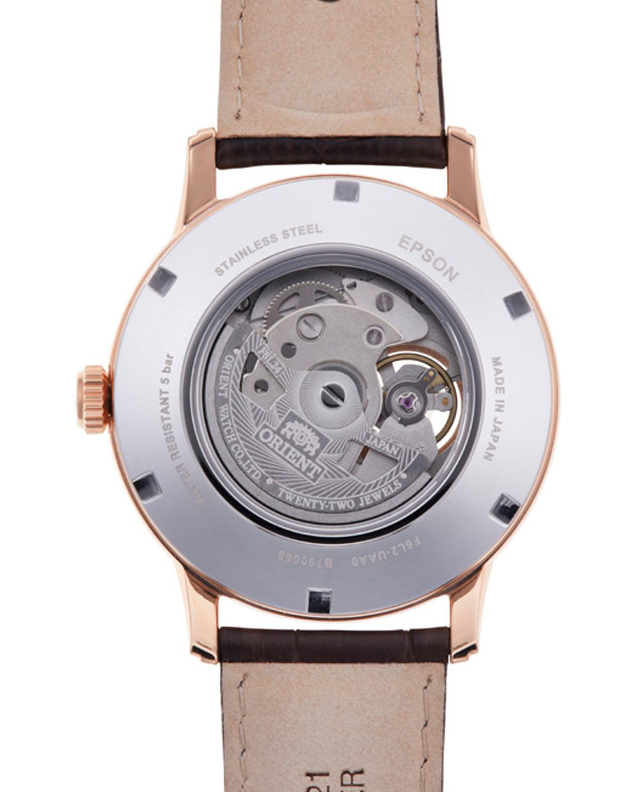 Рифленая заводная головка облегчает настройку времени и других функций. Прозрачная задняя крышка с минеральным стекломМинеральное стеклоМинеральное стекло представляет собой искусственно выращенный минерал кварца. Такое стекло отличается особой устойчивостью к повреждениям и царапинам. Уступает по некоторым качествам сапфировому стеклу. позволяет любоваться внутренним механизмом часов, добавляя изделию особой привлекательности.