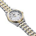 Orient RA-WG0601S — женская кварцевая модель из коллекции Contemporary с элегантным и сдержанным дизайном. Корпус диаметром 32,1 мм выполнен из нержавеющей стали с золотистым PVDPVDУльтратонкое покрытие наносится в технике вакуумного напыления, сочетает в себе нитрид титана особой прочности со слоем золота или оксида хрома. Несёт в себе декоративную или защитную функцию.-покрытием на безелеБезельВнешний ободок, закрепляющий стекло. В спортивных часах так называется поворотное кольцо с делениями на циферблате, выполняет роль таймера – замеряет отрезки времени на шкале. Неподвижный безель – элемент декора. Однонаправленно вращающийся безель на дайверских часах позволяет фиксировать моменты погружения и выныривания на поверхность., создающим изысканный акцент. Белый циферблат украшен тонкими метками и стрелками, обеспечивающими лёгкую читаемость, а апертура даты расположена в позиции «3 часа». Защитную функцию выполняет минеральное стеклоМинеральное стеклоМинеральное стекло представляет собой искусственно выращенный минерал кварца. Такое стекло отличается особой устойчивостью к повреждениям и царапинам. Уступает по некоторым качествам сапфировому стеклу., стойкое к повседневным повреждениям. Часы работают на точном кварцевом механизме на солнечной энергии, не требующем подзавода. Водозащита составляет 5 бар (50 м), что защищает модель от брызг и дождя. Браслет из нержавеющей стали с PVDPVDУльтратонкое покрытие наносится в технике вакуумного напыления, сочетает в себе нитрид титана особой прочности со слоем золота или оксида хрома. Несёт в себе декоративную или защитную функцию.-покрытием гармонично завершает образ, подчеркивая классический стиль и универсальность этих часов.