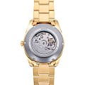 Корпус часов выполнен из нержавеющей стали с PVD-покрытиемPVDУльтратонкое покрытие наносится в технике вакуумного напыления, сочетает в себе нитрид титана особой прочности со слоем золота или оксида хрома. Несёт в себе декоративную или защитную функцию., что придаёт ему дополнительную износостойкость и элегантный внешний вид. Диаметр корпуса составляет 40,8 мм при толщине 10,9 мм. Водонепроницаемость модели достигает 50 метров, что защищает часы от случайных брызг или капель дождя. Часы оснащены сапфировым стекломСапфировое стеклоПрочный и надёжный материал из кристалла сапфира синтетического происхождения, характеризующийся особой твёрдостью и устойчивостью к царапинам и повреждениям., устойчивым к царапинам, и винтовой задней крышкой с прозрачным окном, позволяющим наблюдать за работой механизма.
