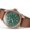 Многокомпонентный бронзовый корпус. Сапфировое стеклоСапфировое стеклоПрочный и надёжный материал из кристалла сапфира синтетического происхождения, характеризующийся особой твёрдостью и устойчивостью к царапинам и повреждениям., выпуклое с обеих сторон, внутреннее антибликовое покрытие. Нержавеющая сталь, завинчивающаяся прозрачная задняя крышка из минерального стеклаМинеральное стеклоМинеральное стекло представляет собой искусственно выращенный минерал кварца. Такое стекло отличается особой устойчивостью к повреждениям и царапинам. Уступает по некоторым качествам сапфировому стеклу.. Стрелки с люминесцентным покрытиемЛюминесцентное покрытиеПозволяет считывать показания времени в темноте. Производители наносят на стрелки, часовые индексы, безель или поверхность циферблата светонакопительный состав, дающий холодное свечение.. Кожаный ремень.
