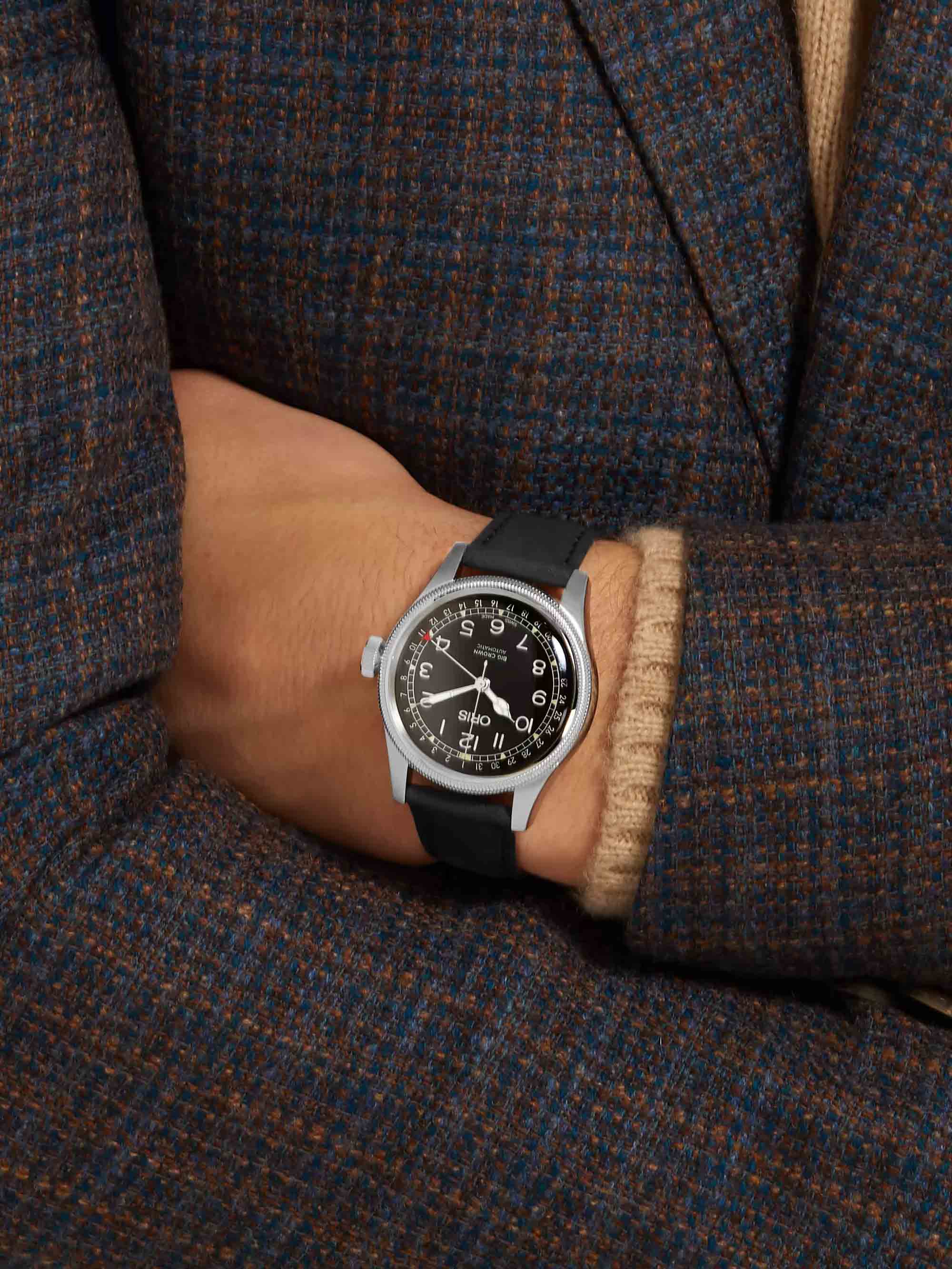 Многокомпонентный корпус из нержавеющей стали. Сапфировое стеклоСапфировое стеклоПрочный и надёжный материал из кристалла сапфира синтетического происхождения, характеризующийся особой твёрдостью и устойчивостью к царапинам и повреждениям., выпуклое с обеих сторон, внутреннее антибликовое покрытие. Нержавеющая сталь, завинчивающаяся прозрачная задняя крышка из минерального стеклаМинеральное стеклоМинеральное стекло представляет собой искусственно выращенный минерал кварца. Такое стекло отличается особой устойчивостью к повреждениям и царапинам. Уступает по некоторым качествам сапфировому стеклу.. Стрелки с люминесцентным покрытиемЛюминесцентное покрытиеПозволяет считывать показания времени в темноте. Производители наносят на стрелки, часовые индексы, безель или поверхность циферблата светонакопительный состав, дающий холодное свечение.. Кожаный ремень.
