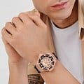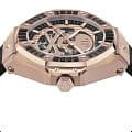 Эти бесподобные часы в стильном дизайне с точным и надежным механизмом завораживают своим корпусом геометричной формы и культовыми элементами бренда и без сомнений сделают мужской образ еще более харизматичным и брутальным. Скелетонизированные мужские механические часы с автоподзаводом. Необычный стальной корпус с IP-покрытиемIP-покрытиеМетод ионного напыления. Демонстрирует повышенную устойчивость к истиранию, окислению и химическим веществам. Под воздействием высокого давления и температуры около 1500°C молекулы металла надёжно соединяются с частицами корпуса часов.. Циферблат декорирован логотипом бренда в положении 12 часов и изображением черепа с костями. Метки в виде штрихов. Минеральное стеклоМинеральное стеклоМинеральное стекло представляет собой искусственно выращенный минерал кварца. Такое стекло отличается особой устойчивостью к повреждениям и царапинам. Уступает по некоторым качествам сапфировому стеклу. устойчивое к мелким механическим повреждениям. Стрелки и метки с люминесцентным покрытиемЛюминесцентное покрытиеПозволяет считывать показания времени в темноте. Производители наносят на стрелки, часовые индексы, безель или поверхность циферблата светонакопительный состав, дающий холодное свечение.. Граненая заводная головка. Неподвижный безельБезельВнешний ободок, закрепляющий стекло. В спортивных часах так называется поворотное кольцо с делениями на циферблате, выполняет роль таймера – замеряет отрезки времени на шкале. Неподвижный безель – элемент декора. Однонаправленно вращающийся безель на дайверских часах позволяет фиксировать моменты погружения и выныривания на поверхность. из нержавеющей стали с IP-покрытиемIP-покрытиеМетод ионного напыления. Демонстрирует повышенную устойчивость к истиранию, окислению и химическим веществам. Под воздействием высокого давления и температуры около 1500°C молекулы металла надёжно соединяются с частицами корпуса часов. и кристаллами. На задней крышке имеется прозрачное окошко, через которое можно наблюдать работу механизма часов. Черный перфорированный силиконовый ремешок с классической застежкой и шестиугольным логотипом бренда. Фирменная дизайнерская упаковка.