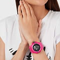 Яркие унисекс часы с минеральным стекломМинеральное стеклоМинеральное стекло представляет собой искусственно выращенный минерал кварца. Такое стекло отличается особой устойчивостью к повреждениям и царапинам. Уступает по некоторым качествам сапфировому стеклу. Philipp Plein Skull Synthetic PWWAA0624, кварцевый механизм с высокой точностью. Класс водозащиты: 50 метров, позволит защитить корпус от случайных брызг или капель дождя. Корпус часов изготовлен из пластика. Циферблат с метками в виде штрихов украшен трехмерным граненым черепом. Люминесцентное покрытиеЛюминесцентное покрытиеПозволяет считывать показания времени в темноте. Производители наносят на стрелки, часовые индексы, безель или поверхность циферблата светонакопительный состав, дающий холодное свечение. стрелок.