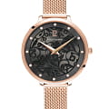 Женские кварцевые часы Pierre Lannier Eolia 039L938. Минеральное стеклоМинеральное стеклоМинеральное стекло представляет собой искусственно выращенный минерал кварца. Такое стекло отличается особой устойчивостью к повреждениям и царапинам. Уступает по некоторым качествам сапфировому стеклу. устойчивое к мелким механическим повреждениям. Центральные часовая и минутная стрелки. Корпус выполнен из нержавеющей стали с PVD-покрытиемPVDУльтратонкое покрытие наносится в технике вакуумного напыления, сочетает в себе нитрид титана особой прочности со слоем золота или оксида хрома. Несёт в себе декоративную или защитную функцию.. Водостойкость: 50 метров, позволит защитить корпус от случайных брызг или капель дождя. Стальной браслет миланского плетения с раскладной застёжкойРаскладная застёжкаТакой тип застёжки используется только на браслетах из металла. Она никогда не раскрывается полностью, происходит разделение на 2 и более частей. Раскладывающая застёжка снизит вероятность потери часов к минимуму.. Черный циферблат украшен кристаллами.