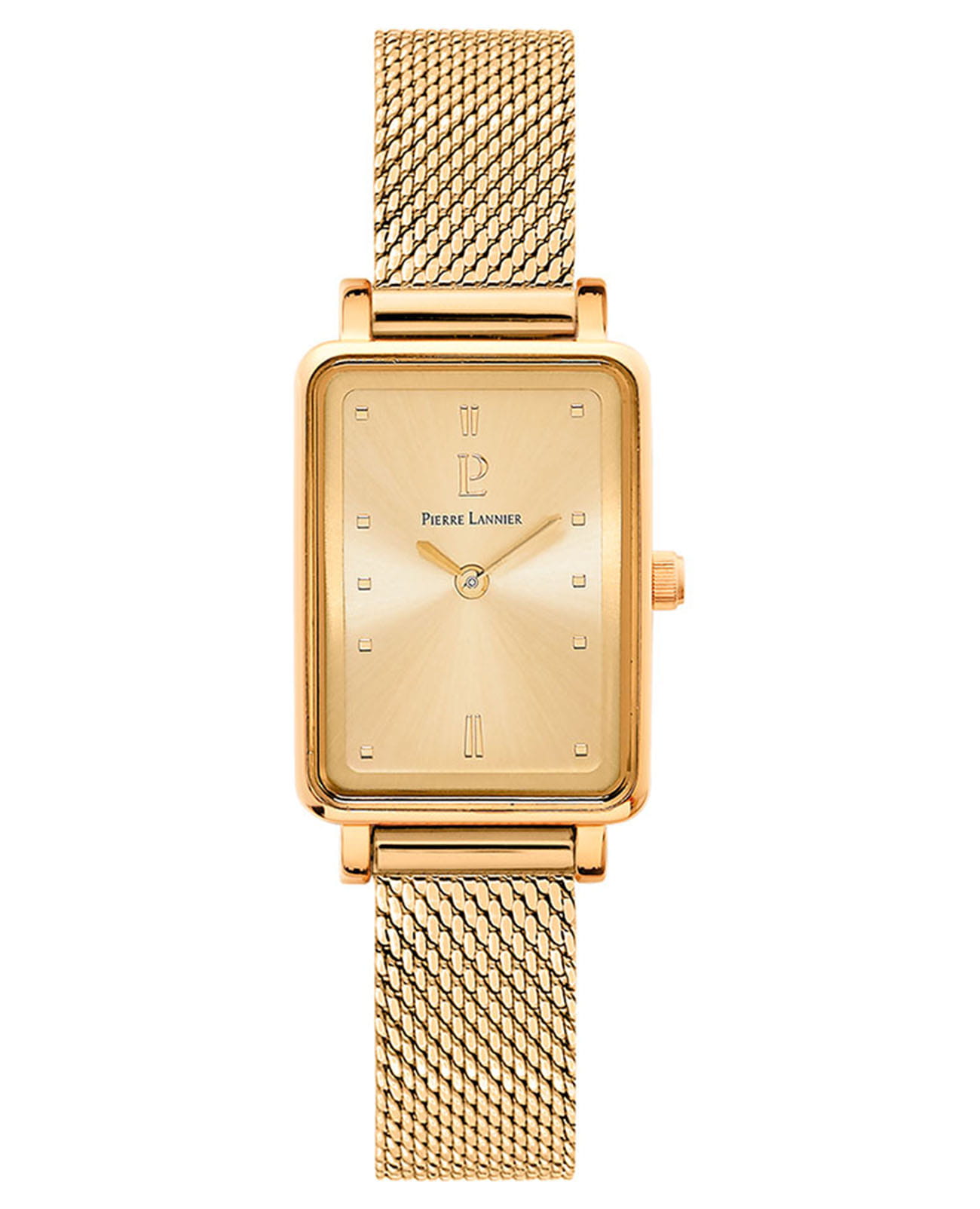 Женские кварцевые часы Pierre Lannier Ariane 057H542. Минеральное стеклоМинеральное стеклоМинеральное стекло представляет собой искусственно выращенный минерал кварца. Такое стекло отличается особой устойчивостью к повреждениям и царапинам. Уступает по некоторым качествам сапфировому стеклу. устойчивое к мелким механическим повреждениям. Центральные часовая и минутная стрелки. Корпус выполнен из нержавеющей стали с IP-покрытиемIP-покрытиеМетод ионного напыления. Демонстрирует повышенную устойчивость к истиранию, окислению и химическим веществам. Под воздействием высокого давления и температуры около 1500°C молекулы металла надёжно соединяются с частицами корпуса часов.. Водостойкость: 30 метров, позволит защитить корпус от случайных брызг или капель дождя. Стальной браслет миланского плетения с IP-покрытиемIP-покрытиеМетод ионного напыления. Демонстрирует повышенную устойчивость к истиранию, окислению и химическим веществам. Под воздействием высокого давления и температуры около 1500°C молекулы металла надёжно соединяются с частицами корпуса часов. и с раскладной застёжкойРаскладная застёжкаТакой тип застёжки используется только на браслетах из металла. Она никогда не раскрывается полностью, происходит разделение на 2 и более частей. Раскладывающая застёжка снизит вероятность потери часов к минимуму..