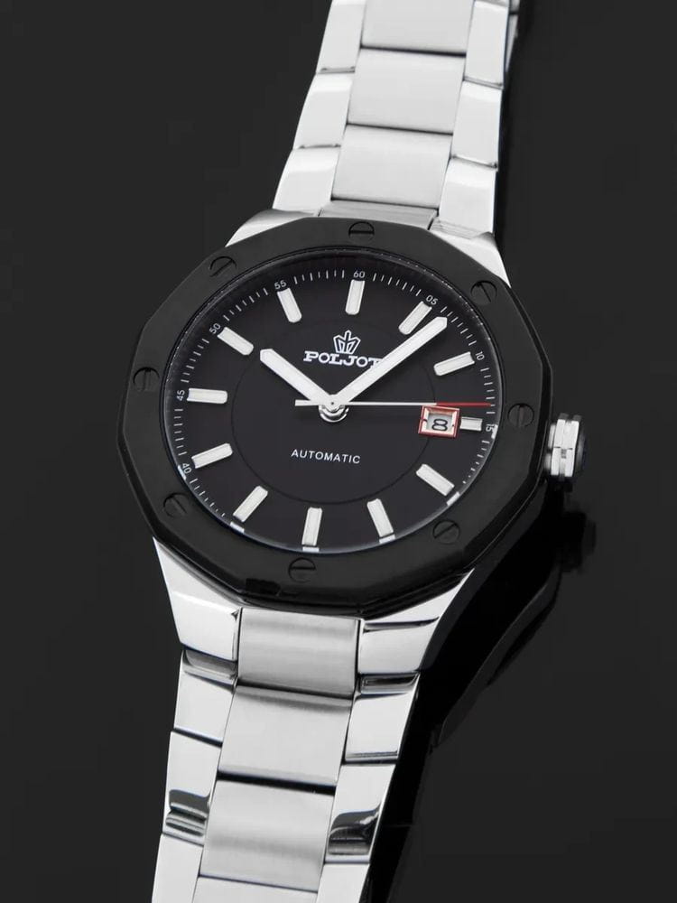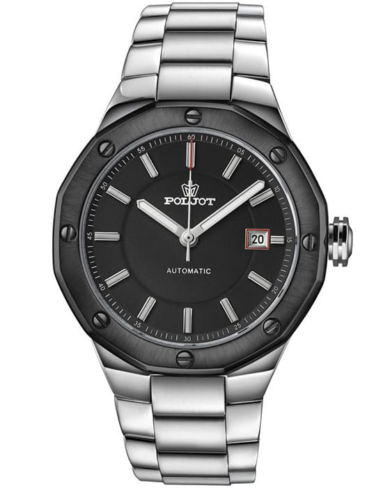 Poljot Ural 8215.363247Б — стильные механические часы с автоподзаводом, сочетающие брутальный характер и современную элегантность. Корпус выполнен из нержавеющей стали, что придаёт модели монолитность и прочность, а глубокий циферблат подчеркивает премиальный облик. Стальной браслет на застёжке-бабочке с кнопкамиЗастёжка "бабочка"Такой вид застёжки дополняется предохранителями, помогающими избежать случайного раскрытия браслета. Обладают изящным исполнением. . БезельБезельВнешний ободок, закрепляющий стекло. В спортивных часах так называется поворотное кольцо с делениями на циферблате, выполняет роль таймера – замеряет отрезки времени на шкале. Неподвижный безель – элемент декора. Однонаправленно вращающийся безель на дайверских часах позволяет фиксировать моменты погружения и выныривания на поверхность. с PVD-покрытиемPVDУльтратонкое покрытие наносится в технике вакуумного напыления, сочетает в себе нитрид титана особой прочности со слоем золота или оксида хрома. Несёт в себе декоративную или защитную функцию.. Внутри установлен надёжный японский механизм Miyota 8215, обеспечивающий точный ход и плавную работу стрелок. Широкие метки и стрелки с люминесцентным покрытиемЛюминесцентное покрытиеПозволяет считывать показания времени в темноте. Производители наносят на стрелки, часовые индексы, безель или поверхность циферблата светонакопительный состав, дающий холодное свечение. гарантируют превосходную читаемость в любое время суток, а окно даты добавляет удобства. Прочное минеральное стеклоМинеральное стеклоМинеральное стекло представляет собой искусственно выращенный минерал кварца. Такое стекло отличается особой устойчивостью к повреждениям и царапинам. Уступает по некоторым качествам сапфировому стеклу. защищает циферблат от повреждений, а водонепроницаемость до 10 бар делает часы надёжным спутником как в деловом, так и активном образе жизни. Poljot Ural — воплощение силы, точности и мужского стиля, созданное для тех, кто ценит механику и уверенность в каждой детали.