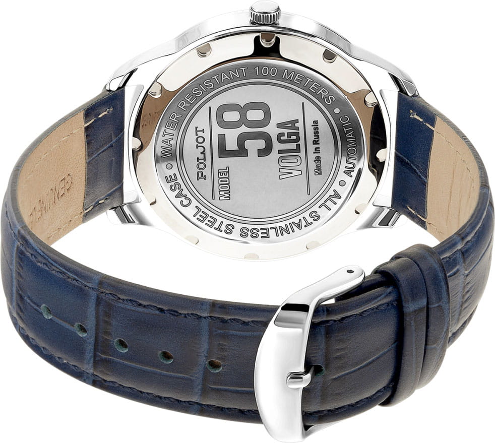 Poljot 8205.581026 — классические механические мужские часы с автоподзаводом, сочетающие традиции отечественного часового производства и лаконичный современный стиль. Корпус из нержавеющей стали подчёркивает надёжность и сдержанную элегантность модели, а глубокий циферблат с минималистичной разметкой, аккуратным окном даты и секундным акцентом придаёт образу динамичность. Механизм с автоподзаводом обеспечивает стабильную работу и плавный ход стрелок, подчёркивая инженерную точность исполнения. Прочное минеральное стеклоМинеральное стеклоМинеральное стекло представляет собой искусственно выращенный минерал кварца. Такое стекло отличается особой устойчивостью к повреждениям и царапинам. Уступает по некоторым качествам сапфировому стеклу. защищает циферблат, а ремешок из натуральной кожи с классической текстурой крокодила обеспечивает комфорт и благородный внешний вид. Poljot — воплощение надёжности, традиций и мужской элегантности, созданное для тех, кто ценит качество и уверенность в каждой детали.