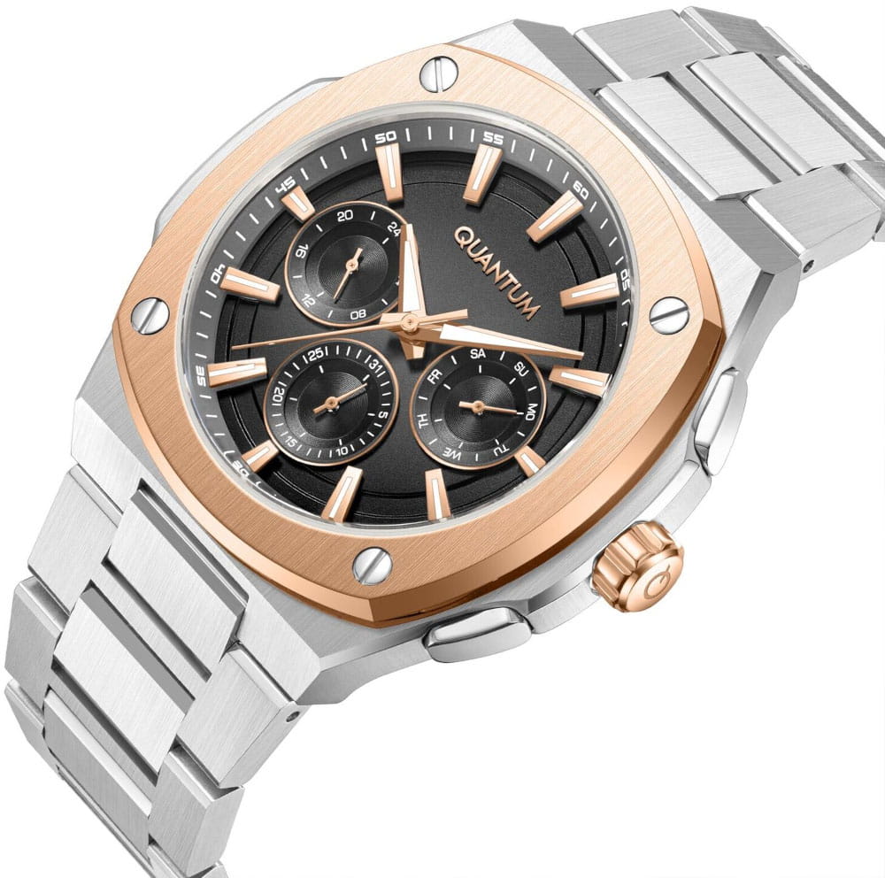 Quantum ADG1032.560 — это наручные часы, сочетающие в себе стиль, точность и надёжность. Модель выполнена в круглой форме из нержавеющей стали с минеральным стекломМинеральное стеклоМинеральное стекло представляет собой искусственно выращенный минерал кварца. Такое стекло отличается особой устойчивостью к повреждениям и царапинам. Уступает по некоторым качествам сапфировому стеклу., устойчивым к мелким повреждениям. Циферблат чёрного цвета оформлен штриховыми метками и оснащён функцией отображения даты, что делает его удобным для повседневного использования. Часы оснащены кварцевым механизмом, обеспечивающим высокую точность хода и минимальное обслуживание. Водонепроницаемость позволяет использовать их при плавании и других водных активностях без глубокого погружения. Стильная конструкция и универсальный дизайн делают модель подходящей для любого образа — от делового до неформального. Эти часы станут идеальным аксессуаром для тех, кто ценит сочетание элегантности, функциональности и надёжности — универсальное решение для повседневной носки и повседневных задач.