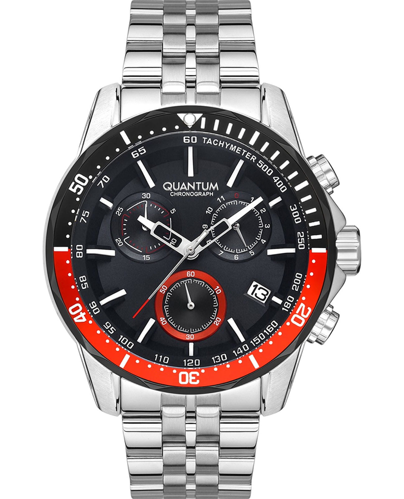 Мужские наручные часы-хронографХронографФункция позволяет измерять отрезки времени с особой точностью: часы, минуты, секунды. Верным признаком хронографа является наличие на циферблате 3 дополнительных окошек-счётчиков. Quantum PWG1036.360, кварцевый механизм с высокой точностью. Минеральное стеклоМинеральное стеклоМинеральное стекло представляет собой искусственно выращенный минерал кварца. Такое стекло отличается особой устойчивостью к повреждениям и царапинам. Уступает по некоторым качествам сапфировому стеклу. устойчивое к появлению царапин, обладающее высокой прозрачностью. Класс водозащиты: 100 метров, позволит плавать, нырять и заниматься другими водными видами спорта. Корпус часов изготовлен из нержавеющей стали. Стрелки и метки с люминесцентным покрытиемЛюминесцентное покрытиеПозволяет считывать показания времени в темноте. Производители наносят на стрелки, часовые индексы, безель или поверхность циферблата светонакопительный состав, дающий холодное свечение.. БезельБезельВнешний ободок, закрепляющий стекло. В спортивных часах так называется поворотное кольцо с делениями на циферблате, выполняет роль таймера – замеряет отрезки времени на шкале. Неподвижный безель – элемент декора. Однонаправленно вращающийся безель на дайверских часах позволяет фиксировать моменты погружения и выныривания на поверхность. с PVD-покрытиемPVDУльтратонкое покрытие наносится в технике вакуумного напыления, сочетает в себе нитрид титана особой прочности со слоем золота или оксида хрома. Несёт в себе декоративную или защитную функцию.. Стальной браслет на раскладной застёжкеРаскладная застёжкаТакой тип застёжки используется только на браслетах из металла. Она никогда не раскрывается полностью, происходит разделение на 2 и более частей. Раскладывающая застёжка снизит вероятность потери часов к минимуму..