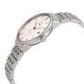 Наручные часы премиальной категории отличаются лаконичным внешним видом, светлый узорчатый циферблат дополнен контрастными синими стрелками. Модель комплектуется автоматическим калибром ETA C07.611 с увеличенным резервом хода до 80 часов, прозрачная задняя крышка позволяет разглядывать работу механизма. Сапфировое стеклоСапфировое стеклоПрочный и надёжный материал из кристалла сапфира синтетического происхождения, характеризующийся особой твёрдостью и устойчивостью к царапинам и повреждениям. с антибликовой обработкой. Водостойкость до 5 бар. Стальной браслет на раскладной застёжкеРаскладная застёжкаТакой тип застёжки используется только на браслетах из металла. Она никогда не раскрывается полностью, происходит разделение на 2 и более частей. Раскладывающая застёжка снизит вероятность потери часов к минимуму.. Циферблат выполнен с метками в виде штрихов. Окошко даты в положении 3 часа. Диаметр корпуса: 37.7 мм.