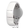 Глянцевый корпус представлен в оригинальном дизайне, его линии плавно перетекают в браслет. Наручные часы выполнены из высокотехнологичной плазменной керамикиВысокотехнологичная плазменная керамикаИнновационный материал, технология запатентована. Выплавление керамики осуществляется в печи при 20 000 °C, белоснежный материал под воздействием ультравысокой температуры приобретает уникальный блеск, присущий металлам., материал не вызывает аллергии и обеспечивает невероятный комфорт при ношении. Швейцарский кварцевый калибр ETA 955.112. Сапфировое стеклоСапфировое стеклоПрочный и надёжный материал из кристалла сапфира синтетического происхождения, характеризующийся особой твёрдостью и устойчивостью к царапинам и повреждениям. устойчиво к образованию царапин. Водостойкость 3 бар. Застёжка «бабочка» с кнопкамиЗастёжка "бабочка"Такой вид застёжки дополняется предохранителями, помогающими избежать случайного раскрытия браслета. Обладают изящным исполнением. сводит к минимуму вероятность потери модели. Циферблат выполнен с метками в виде бриллиантов. Окошко даты в положении 6 часа. Диаметр корпуса: 40 мм.
