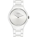 Швейцарские женские Rado True Thinline R27958022, кварцевый механизм с высокой точностью. Сапфировое стеклоСапфировое стеклоПрочный и надёжный материал из кристалла сапфира синтетического происхождения, характеризующийся особой твёрдостью и устойчивостью к царапинам и повреждениям. устойчивое к появлению царапин, обладающее высокой прозрачностью. Корпус часов изготовлен из высокотехнологичной керамикиВысокотехнологичная керамикаИнновационный запатентованный Rado материал с гладкой или матовой поверхностью. Керамика за счёт кристаллической структуры обладает повышенной устойчивостью от возникновения царапин. Материал способен принимать температуру тела человека, обеспечивая невероятный комфорт при ношении.. Класс водозащиты: 30 метров, позволит защитить корпус от случайных брызг или капель дождя. Керамический браслет на застёжке-бабочке с кнопкамиЗастёжка "бабочка"Такой вид застёжки дополняется предохранителями, помогающими избежать случайного раскрытия браслета. Обладают изящным исполнением. .