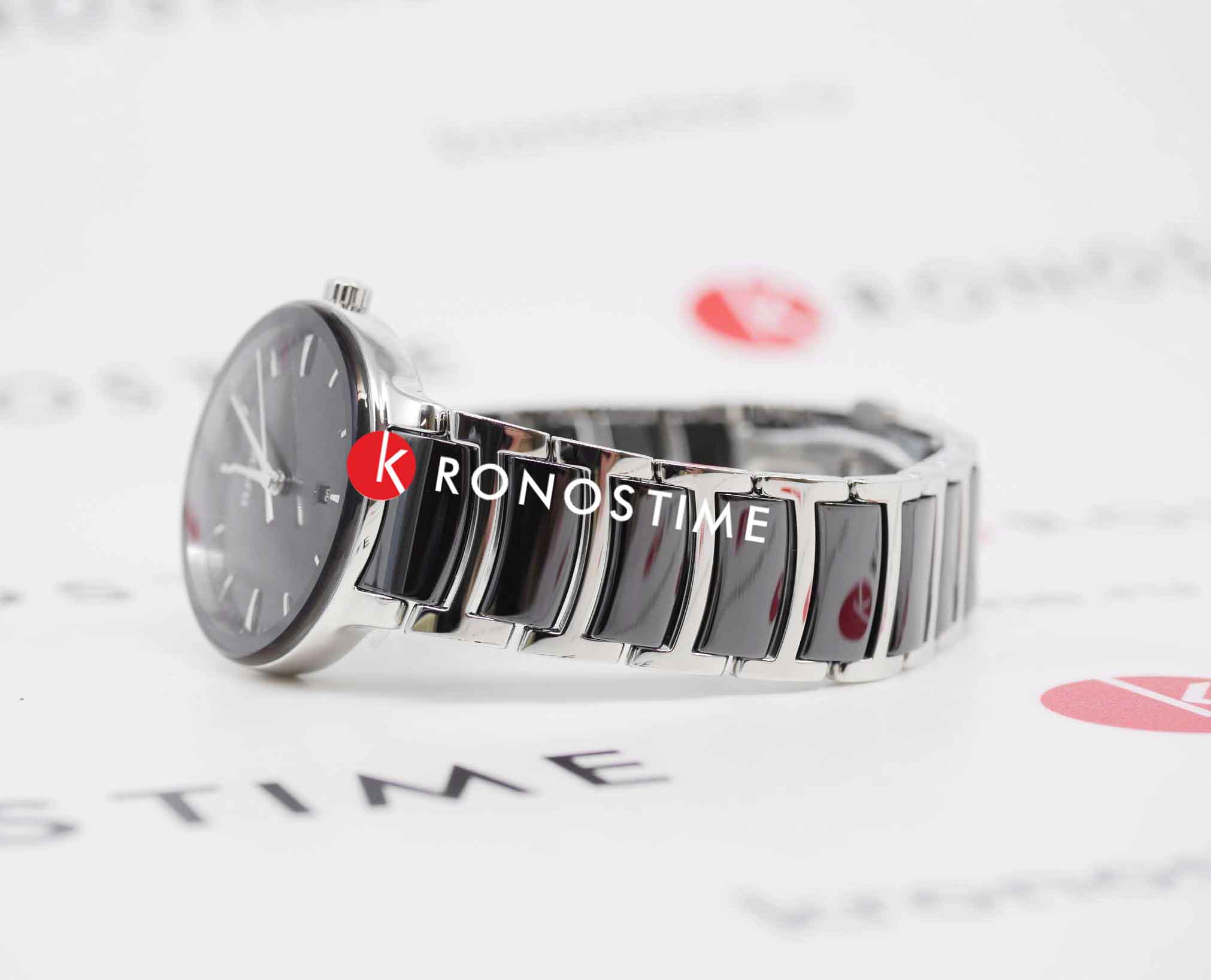 Швейцарские женские часы с надёжным кварцевым механизмом Rado Centrix R30026152. Корпус часов изготовлен из нержавеющей стали. Браслет из стали и высокотехнологичной керамикиВысокотехнологичная керамикаИнновационный запатентованный Rado материал с гладкой или матовой поверхностью. Керамика за счёт кристаллической структуры обладает повышенной устойчивостью от возникновения царапин. Материал способен принимать температуру тела человека, обеспечивая невероятный комфорт при ношении. на раскладной застёжкеРаскладная застёжкаТакой тип застёжки используется только на браслетах из металла. Она никогда не раскрывается полностью, происходит разделение на 2 и более частей. Раскладывающая застёжка снизит вероятность потери часов к минимуму.. Сапфировое стеклоСапфировое стеклоПрочный и надёжный материал из кристалла сапфира синтетического происхождения, характеризующийся особой твёрдостью и устойчивостью к царапинам и повреждениям. устойчивое к мелким механическим повреждениям. Класс водозащиты: 50 метров, позволит защитить корпус от случайных брызг или капель дождя. Окошко даты находится в положении 6 часов.