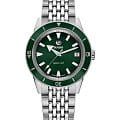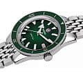 Премиальная модель обладает винтажным характером, зелёный циферблат обращает наше внимание на оригинальные стрелки в виде меча и стрелы. Часы обладают высокими показателями водонепроницаемости - сохранение герметичности до 20 бар, что стало возможным благодаря задней крышке и заводной головке с винтовыми фиксаторами. Автоподзавод. Швейцарский калибр ETA C07.611 с 80-часовым резервом хода. Антибликовая обработка сапфирового стекла. Корпус из хирургической стали 316L, безельБезельВнешний ободок, закрепляющий стекло. В спортивных часах так называется поворотное кольцо с делениями на циферблате, выполняет роль таймера – замеряет отрезки времени на шкале. Неподвижный безель – элемент декора. Однонаправленно вращающийся безель на дайверских часах позволяет фиксировать моменты погружения и выныривания на поверхность. из высокотехнологичной керамикиВысокотехнологичная керамикаИнновационный запатентованный Rado материал с гладкой или матовой поверхностью. Керамика за счёт кристаллической структуры обладает повышенной устойчивостью от возникновения царапин. Материал способен принимать температуру тела человека, обеспечивая невероятный комфорт при ношении.. Прочный стальной браслет. Отображение числа. Диаметр корпуса: 37 мм.