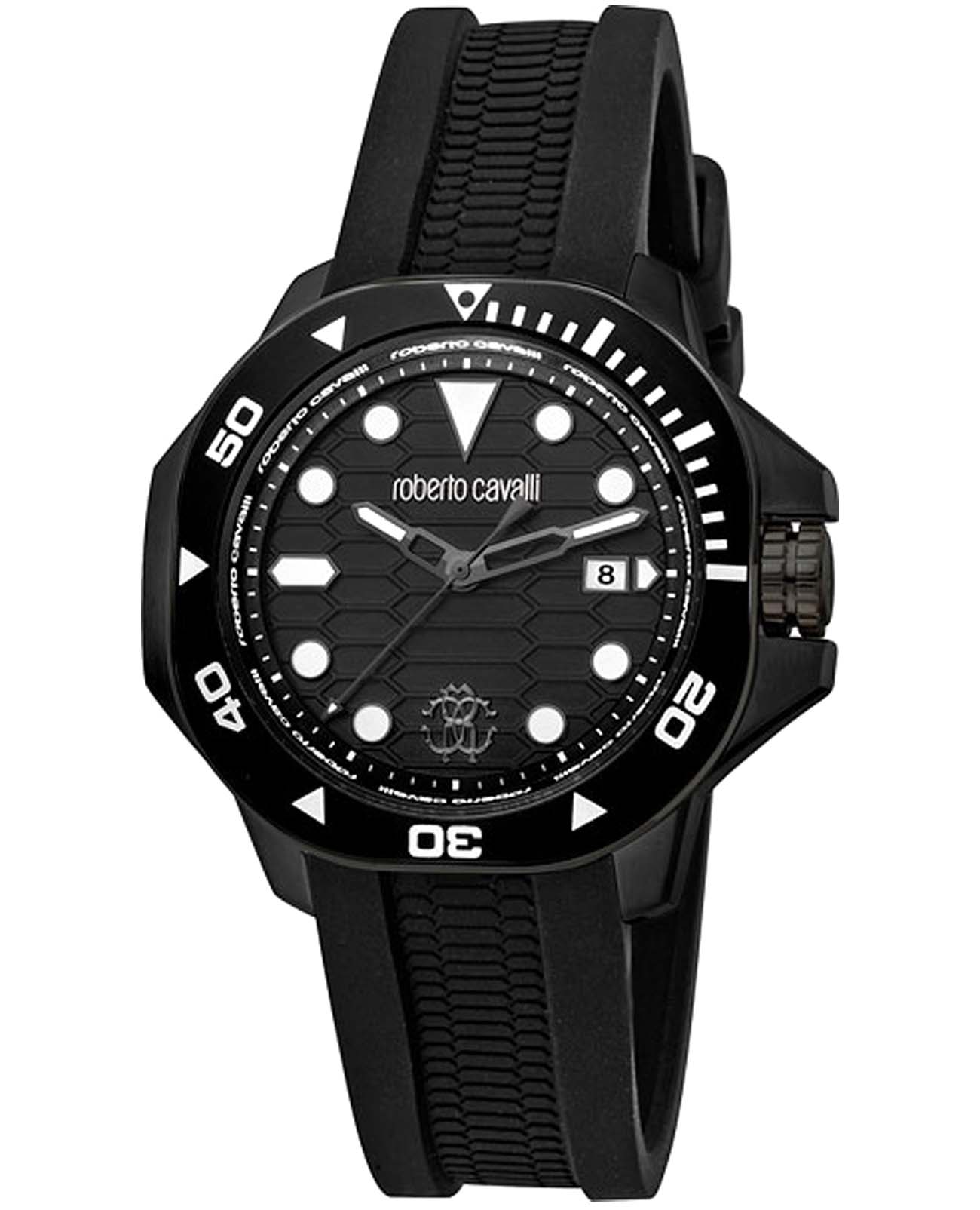 ROBERTO CAVALLI Spiccato RC5G044P0075 — стильные итальянские часы сочетающие в себе элегантность и современный функционал. Круглый корпус диаметром 42 мм выполнен из нержавеющей стали с PVD-покрытиемPVDУльтратонкое покрытие наносится в технике вакуумного напыления, сочетает в себе нитрид титана особой прочности со слоем золота или оксида хрома. Несёт в себе декоративную или защитную функцию., толщина корпуса составляет 11 мм, что придает модели выразительный внешний вид и надежную защиту от внешних воздействий. Часы оснащены кварцевым механизмом, также обладают функцией отображения даты, что делает их удобными для ежедневного использования. Минеральное стеклоМинеральное стеклоМинеральное стекло представляет собой искусственно выращенный минерал кварца. Такое стекло отличается особой устойчивостью к повреждениям и царапинам. Уступает по некоторым качествам сапфировому стеклу. защищает часы от царапин. Водозащита 100 метров, позволит плавать, нырять и заниматься другими водными видами спорта. Силиконовый ремешок на стандартной застёжке обеспечивает комфортное ношение. БезельБезельВнешний ободок, закрепляющий стекло. В спортивных часах так называется поворотное кольцо с делениями на циферблате, выполняет роль таймера – замеряет отрезки времени на шкале. Неподвижный безель – элемент декора. Однонаправленно вращающийся безель на дайверских часах позволяет фиксировать моменты погружения и выныривания на поверхность. с PVD-покрытиемPVDУльтратонкое покрытие наносится в технике вакуумного напыления, сочетает в себе нитрид титана особой прочности со слоем золота или оксида хрома. Несёт в себе декоративную или защитную функцию.. Стрелки и метки с люминесцентным покрытиемЛюминесцентное покрытиеПозволяет считывать показания времени в темноте. Производители наносят на стрелки, часовые индексы, безель или поверхность циферблата светонакопительный состав, дающий холодное свечение. обеспечивают отличную читаемость в любое время суток.
