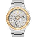 Santa Barbara Polo & Racquet Club Luxury SB.1.10548-3 — стильные мужские часы, сочетающие спортивную динамику и функциональность. Крупный корпус выполнен из нержавеющей стали 316L и гармонично дополнен стальным браслетом на застёжке-бабочке с кнопкамиЗастёжка "бабочка"Такой вид застёжки дополняется предохранителями, помогающими избежать случайного раскрытия браслета. Обладают изящным исполнением. . Неподвижный безельБезельВнешний ободок, закрепляющий стекло. В спортивных часах так называется поворотное кольцо с делениями на циферблате, выполняет роль таймера – замеряет отрезки времени на шкале. Неподвижный безель – элемент декора. Однонаправленно вращающийся безель на дайверских часах позволяет фиксировать моменты погружения и выныривания на поверхность. с IP-покрытиемIP-покрытиеМетод ионного напыления. Демонстрирует повышенную устойчивость к истиранию, окислению и химическим веществам. Под воздействием высокого давления и температуры около 1500°C молекулы металла надёжно соединяются с частицами корпуса часов. украшен римскими цифрами. Циферблат с акцентными метками и стрелками с люминесцентным покрытиемЛюминесцентное покрытиеПозволяет считывать показания времени в темноте. Производители наносят на стрелки, часовые индексы, безель или поверхность циферблата светонакопительный состав, дающий холодное свечение. оформлен в многослойной структуре и оснащён вспомогательными индикаторами, включая 24-часовой формат, дату и день недели, что делает модель более практичной. Минеральное стеклоМинеральное стеклоМинеральное стекло представляет собой искусственно выращенный минерал кварца. Такое стекло отличается особой устойчивостью к повреждениям и царапинам. Уступает по некоторым качествам сапфировому стеклу. с сапфировым покрытием защищает циферблат от царапин, а кварцевый механизм обеспечивает высокую точность. Благодаря своей универсальной эстетике эти часы уместны и в деловой среде, и в повседневном образе.