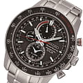 Эффектные мужские часы в современным дизайном. Механизм работает от солнечной энергии, калибр Seiko V198. Корпус круглой формы, с черным аналоговый циферблатом. Браслет и корпус выполнены из нержавеющей стали с частичным PVD покрытием. Сапфировое стекло устойчиво к царапинам. Оснащены функциями хронографа, вечного календаря и будильника. Водонепроницаемость 100 м.
