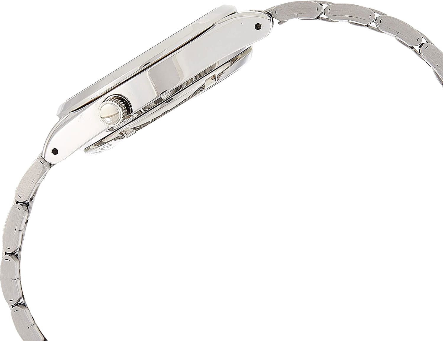 Наручные часы выполнены в классическом стиле, спортивные элементы делают акцент на надёжности и функциональности модели. Традиционный характер выражается в оснащении аксессуара японским механизмом Seiko 7S26 с возможностью ручного и автоматического завода. Калибр отличается сохранением запаса хода на 40 часов, его работу можно отследить через прозрачную завинчивающуюся заднюю крышку. В качестве основного материала была выбрана хирургическая сталь 316L, характеризующаяся устойчивостью к царапинам, повреждениям. Защиту циферблата обеспечивает прочное минеральное стеклоМинеральное стеклоМинеральное стекло представляет собой искусственно выращенный минерал кварца. Такое стекло отличается особой устойчивостью к повреждениям и царапинам. Уступает по некоторым качествам сапфировому стеклу. Hardlex. На стрелки нанесено люминесцентное покрытиеЛюминесцентное покрытиеПозволяет считывать показания времени в темноте. Производители наносят на стрелки, часовые индексы, безель или поверхность циферблата светонакопительный состав, дающий холодное свечение.. Водостойкость при давлении до 5 бар позволяет принимать душ в часах, они выдержат дождь или мойку машины. На позиции 3 часов размещено окошко даты и дня недели. Диаметр корпуса: 37 мм.