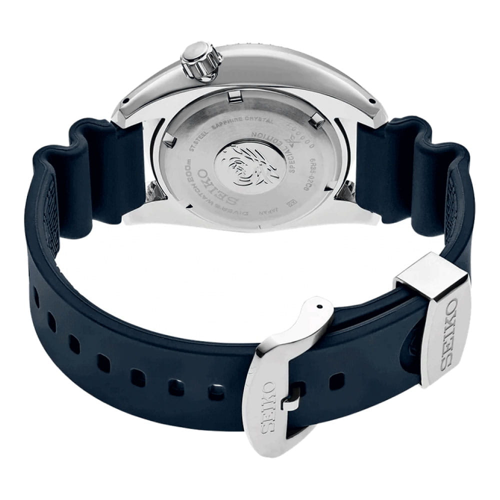 Seiko Prospex SPB325J1 — профессиональные дайверские часы, созданные с учётом строгих стандартов для подводных погружений. Крупный корпус диаметром 45 мм выполнен из нержавеющей стали с сатинированной и полированной обработкой, а массивный односторонний вращающийся безельБезельВнешний ободок, закрепляющий стекло. В спортивных часах так называется поворотное кольцо с делениями на циферблате, выполняет роль таймера – замеряет отрезки времени на шкале. Неподвижный безель – элемент декора. Однонаправленно вращающийся безель на дайверских часах позволяет фиксировать моменты погружения и выныривания на поверхность. с PVD-покрытиемPVDУльтратонкое покрытие наносится в технике вакуумного напыления, сочетает в себе нитрид титана особой прочности со слоем золота или оксида хрома. Несёт в себе декоративную или защитную функцию. с минутной шкалой облегчает контроль времени под водой. Защитную функцию выполняет сапфировое стеклоСапфировое стеклоПрочный и надёжный материал из кристалла сапфира синтетического происхождения, характеризующийся особой твёрдостью и устойчивостью к царапинам и повреждениям. с антибликовым покрытиемАнтибликовое покрытиеСлой оксида металла в 0,13-0,3 микрон, благодаря которому стекло часов не бликует и не отражает свет. Антибликовое покрытие уменьшает отражение света в 10 раз, обеспечивая отличную читаемость показателей циферблата., обеспечивающим высокую читаемость в любых условиях. Внутри установлен автоматический калибр 4R35 с возможностью ручного завода, стоп-секундой и запасом хода около 70 часа. Водозащита 200 м (20 бар) соответствует международному стандарту ISO для дайверских часов. Чёрный циферблат с крупными метками и стрелками покрыт люминесцентным покрытиемЛюминесцентное покрытиеПозволяет считывать показания времени в темноте. Производители наносят на стрелки, часовые индексы, безель или поверхность циферблата светонакопительный состав, дающий холодное свечение., что гарантирует видимость даже в кромешной темноте. Часы комплектуются прочным каучуковым ремешком с классической застёжкой, который устойчив к влаге и морской соли, делая модель надёжным инструментом для настоящего дайвинга.