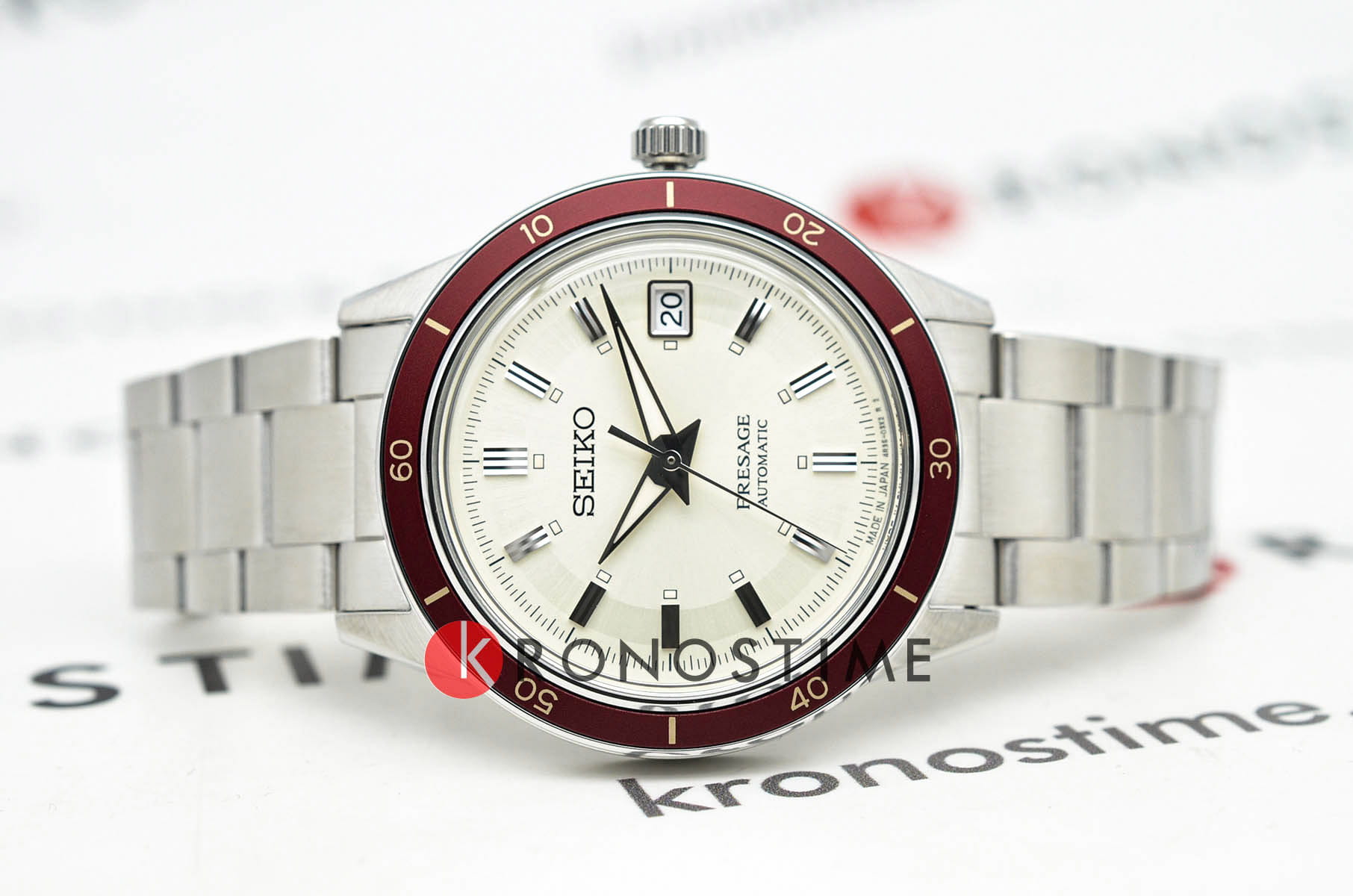 Мужские наручные часы Seiko SRPH93J1 из коллекции Presage Style 60s сочетают в себе классический дизайн и надежность современных технологий. Модель обладает круглым корпусом диаметром 40,8 мм, изготовленным из нержавеющей стали, что обеспечивает высокую устойчивость к внешним воздействиям . Толщина корпуса составляет 12 мм, а для защиты используется минеральное стеклоМинеральное стеклоМинеральное стекло представляет собой искусственно выращенный минерал кварца. Такое стекло отличается особой устойчивостью к повреждениям и царапинам. Уступает по некоторым качествам сапфировому стеклу. Hardlex Crystal, обеспечивающее прочную защиту от царапин .  БезельБезельВнешний ободок, закрепляющий стекло. В спортивных часах так называется поворотное кольцо с делениями на циферблате, выполняет роль таймера – замеряет отрезки времени на шкале. Неподвижный безель – элемент декора. Однонаправленно вращающийся безель на дайверских часах позволяет фиксировать моменты погружения и выныривания на поверхность. с PVD-покрытиемPVDУльтратонкое покрытие наносится в технике вакуумного напыления, сочетает в себе нитрид титана особой прочности со слоем золота или оксида хрома. Несёт в себе декоративную или защитную функцию.. Браслет также выполнен из нержавеющей стали с раскладной застежкойРаскладная застёжкаТакой тип застёжки используется только на браслетах из металла. Она никогда не раскрывается полностью, происходит разделение на 2 и более частей. Раскладывающая застёжка снизит вероятность потери часов к минимуму., гарантирующей комфортное ношение . Циферблат бежевого цвета украшен текстурой, которая подчеркивает элегантный стиль модели. Часы оснащены функцией отображения даты на позиции «3 часа» . Модель работает на автоматическом механизме с калибром 4R35, который включает 23 камня и обладает запасом хода до 41 часа . Водонепроницаемость составляет WR 50, что позволяет защитить корпус от случайных брызг и кратковременного контакта с водой . Вдохновленные культурой 1960-х годов, эти часы демонстрируют уникальный стиль и внимание к деталям, сохраняя при этом практичность для повседневного использования.