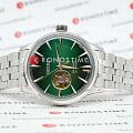 Мужские наручные часы Seiko SSA441J1 из коллекции Presage Cocktail Time сочетают в себе классический дизайн и надежность современных технологий. Модель обладает круглым корпусом диаметром 40,5 мм, изготовленным из нержавеющей стали, что обеспечивает высокую устойчивость к внешним воздействиям . Толщина корпуса составляет 11,8 мм, а для защиты используется минеральное стеклоМинеральное стеклоМинеральное стекло представляет собой искусственно выращенный минерал кварца. Такое стекло отличается особой устойчивостью к повреждениям и царапинам. Уступает по некоторым качествам сапфировому стеклу. Hardlex Crystal, обеспечивающее прочную защиту от царапин . Браслет также выполнен из нержавеющей стали с раскладной застежкойРаскладная застёжкаТакой тип застёжки используется только на браслетах из металла. Она никогда не раскрывается полностью, происходит разделение на 2 и более частей. Раскладывающая застёжка снизит вероятность потери часов к минимуму., гарантирующей комфортное ношение . Циферблат зеленого цвета украшен текстурой, которая подчеркивает элегантный стиль модели. асы работают на автоматическом механизме с калибром 4R38, который включает 23 камня и обладает запасом хода до 41 часа. Водонепроницаемость составляет WR 50, что позволяет защитить корпус от случайных брызг и кратковременного контакта с водой . Вдохновленные культурой японских коктейлей, эти часы демонстрируют уникальный стиль и внимание к деталям.
