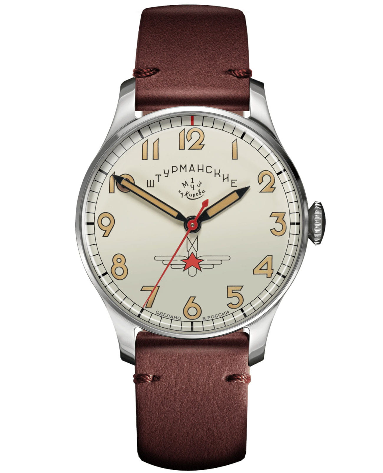 Лимитированные мужские российские механические часы Штурманские Гагарин Наследие 2609/3771470, механический механизм (автоматический калибр) с высокой точностью. Минеральное стеклоМинеральное стеклоМинеральное стекло представляет собой искусственно выращенный минерал кварца. Такое стекло отличается особой устойчивостью к повреждениям и царапинам. Уступает по некоторым качествам сапфировому стеклу. устойчивое к мелким механическим повреждениям. Класс водозащиты: 50 метров, позволит защитить корпус от случайных брызг или капель дождя. Корпус часов изготовлен из стали. Кожаный ремешок на стандартной застёжке. Стрелки и метки с люминесцентным покрытиемЛюминесцентное покрытиеПозволяет считывать показания времени в темноте. Производители наносят на стрелки, часовые индексы, безель или поверхность циферблата светонакопительный состав, дающий холодное свечение.. Чёткая, читаемая минутная шкала уходит за приделы видимой области циферблата, подчёркивая изящность ободка корпуса. Оцифровка циферблата – отличительная особенность данной модели, её дизайн не изменился с самой первый, гагаринской серии. Заводная головка конической формы с удобной насечкой повторяет дизайн оригинальной модели.