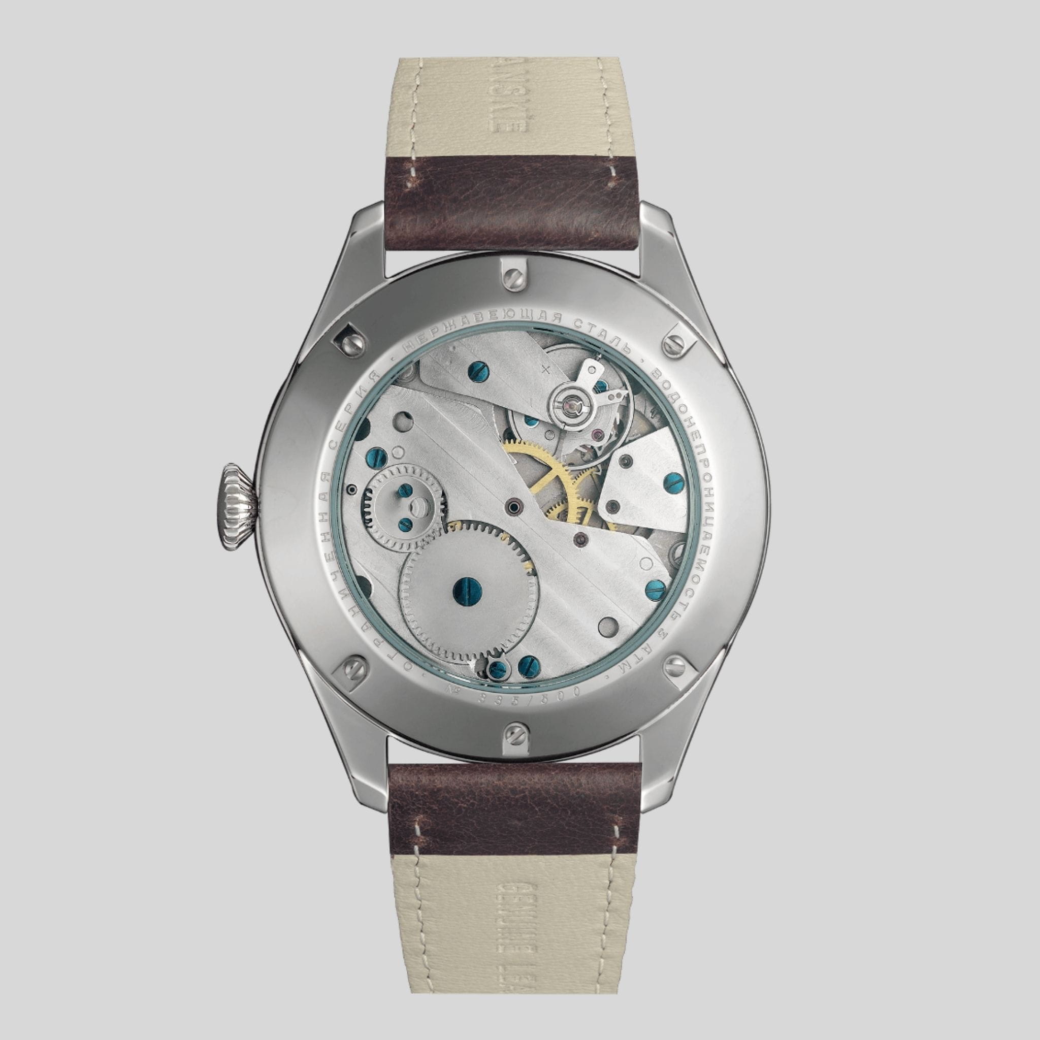 Мужские российские механические часы Штурманские 3105/1881917, механический механизм (автоматический калибр) с высокой точностью. Минеральное стеклоМинеральное стеклоМинеральное стекло представляет собой искусственно выращенный минерал кварца. Такое стекло отличается особой устойчивостью к повреждениям и царапинам. Уступает по некоторым качествам сапфировому стеклу. устойчивое к мелким механическим повреждениям. Класс водозащиты: 50 метров, позволит защитить корпус от случайных брызг или капель дождя. Корпус часов изготовлен из стали. Кожаный ремешок на стандартной застёжке. Чёткая, читаемая минутная шкала уходит за приделы видимой области циферблата, подчёркивая изящность ободка корпуса. Окошко даты находится в положении 3 часов.
