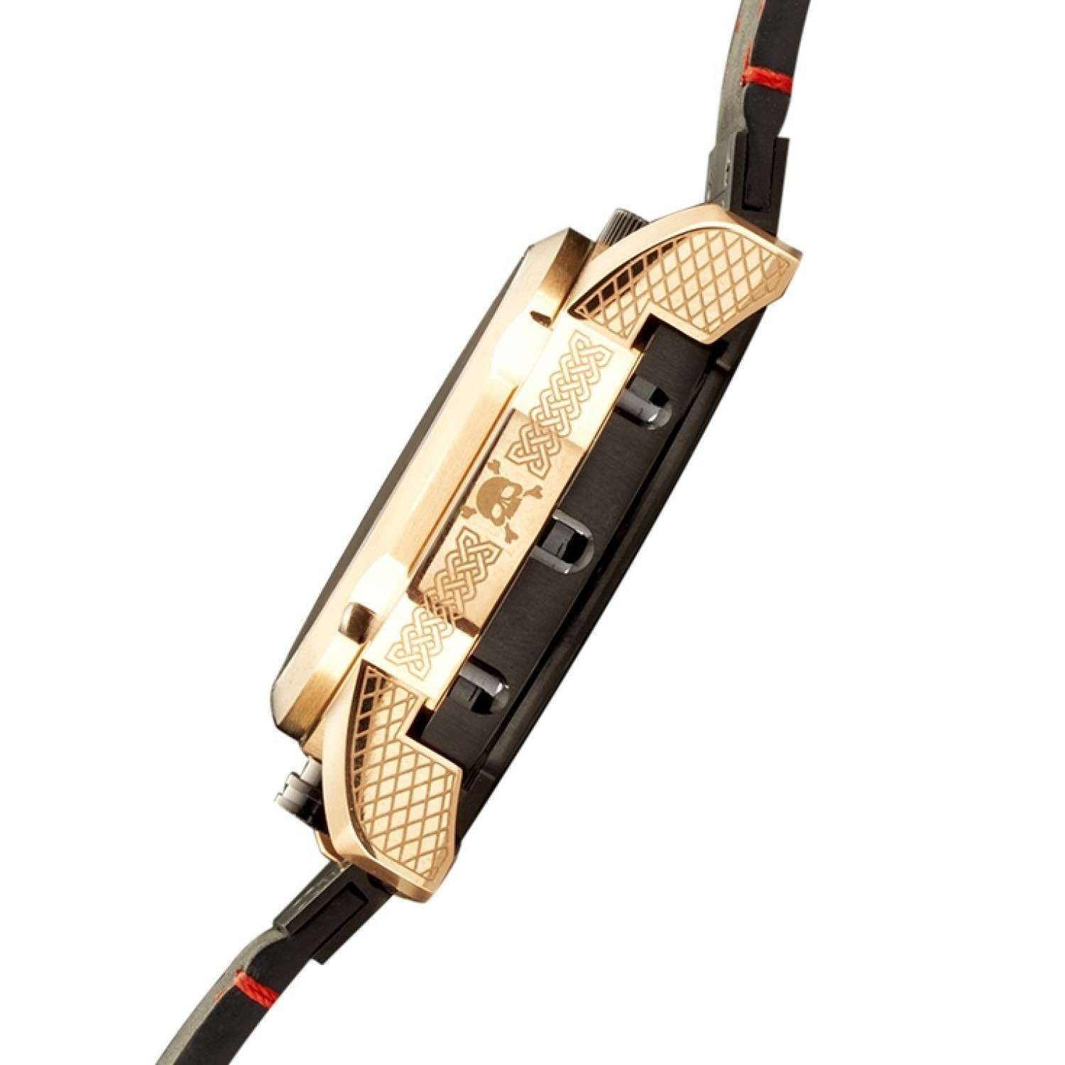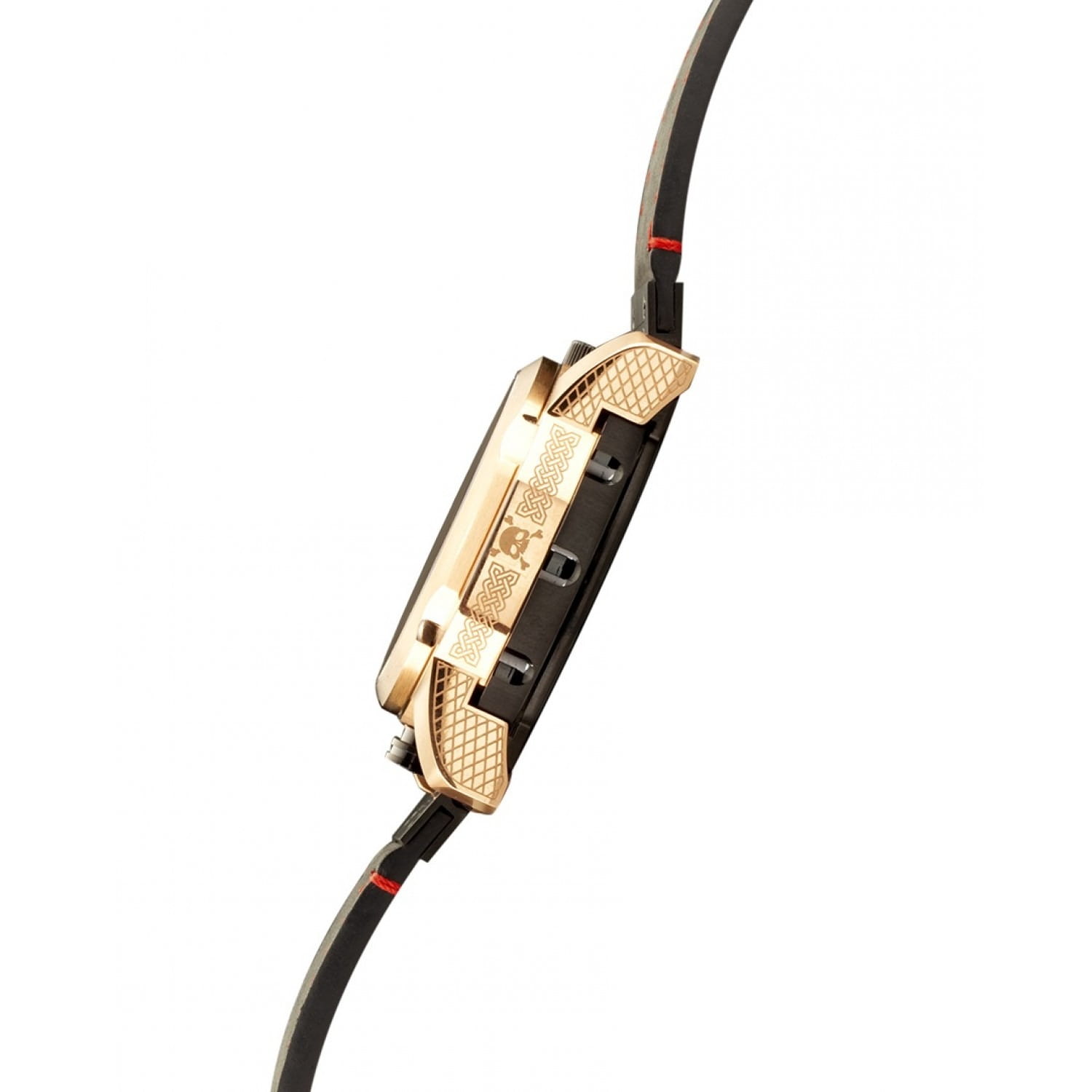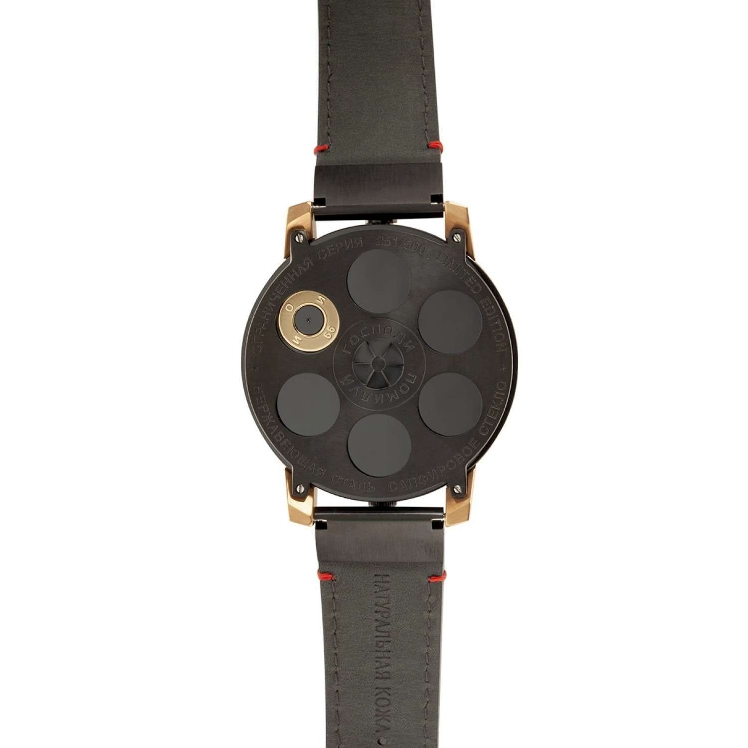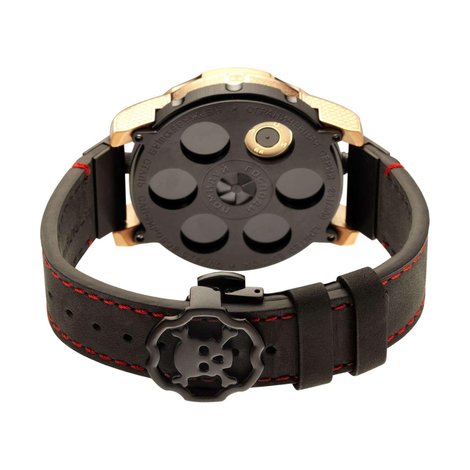 Российские механические наручные часы Слава Русская RUлетка 1903202/300-NH05, которые станут идеальным аксессуаром для повседневного ношения. Эти часы сочетают в себе элегантность и практичность, предлагая безупречный стиль и надежность. Оснащенные механизмом SEIKO NH05 с автоподзаводом, они обеспечивают точность и долговечность. Стальной корпус с золотистым PVDPVDУльтратонкое покрытие наносится в технике вакуумного напыления, сочетает в себе нитрид титана особой прочности со слоем золота или оксида хрома. Несёт в себе декоративную или защитную функцию. покрытием и сапфировым стекломСапфировое стеклоПрочный и надёжный материал из кристалла сапфира синтетического происхождения, характеризующийся особой твёрдостью и устойчивостью к царапинам и повреждениям. защищает циферблат с арабскими цифрами и необычными стрелками цифрами. БезельБезельВнешний ободок, закрепляющий стекло. В спортивных часах так называется поворотное кольцо с делениями на циферблате, выполняет роль таймера – замеряет отрезки времени на шкале. Неподвижный безель – элемент декора. Однонаправленно вращающийся безель на дайверских часах позволяет фиксировать моменты погружения и выныривания на поверхность. часов с PVDPVDУльтратонкое покрытие наносится в технике вакуумного напыления, сочетает в себе нитрид титана особой прочности со слоем золота или оксида хрома. Несёт в себе декоративную или защитную функцию. покрытием золотистого цвета. Особенность часов - искусственные бриллианты в глазах орлов и изображение черепов на циферблате. Это первые в мире часы с шестизарядным револьверным барабаном. В барабане — один патрон. Старинная забава русских офицеров и любителей острых ощущений со всего мира. Водозащита на часах до 10 ATM, что делает их надежными в различных условиях. Кожаный черный ремешок с застежкой «бабочка»Застёжка "бабочка"Такой вид застёжки дополняется предохранителями, помогающими избежать случайного раскрытия браслета. Обладают изящным исполнением. завершает этот изысканный образ.