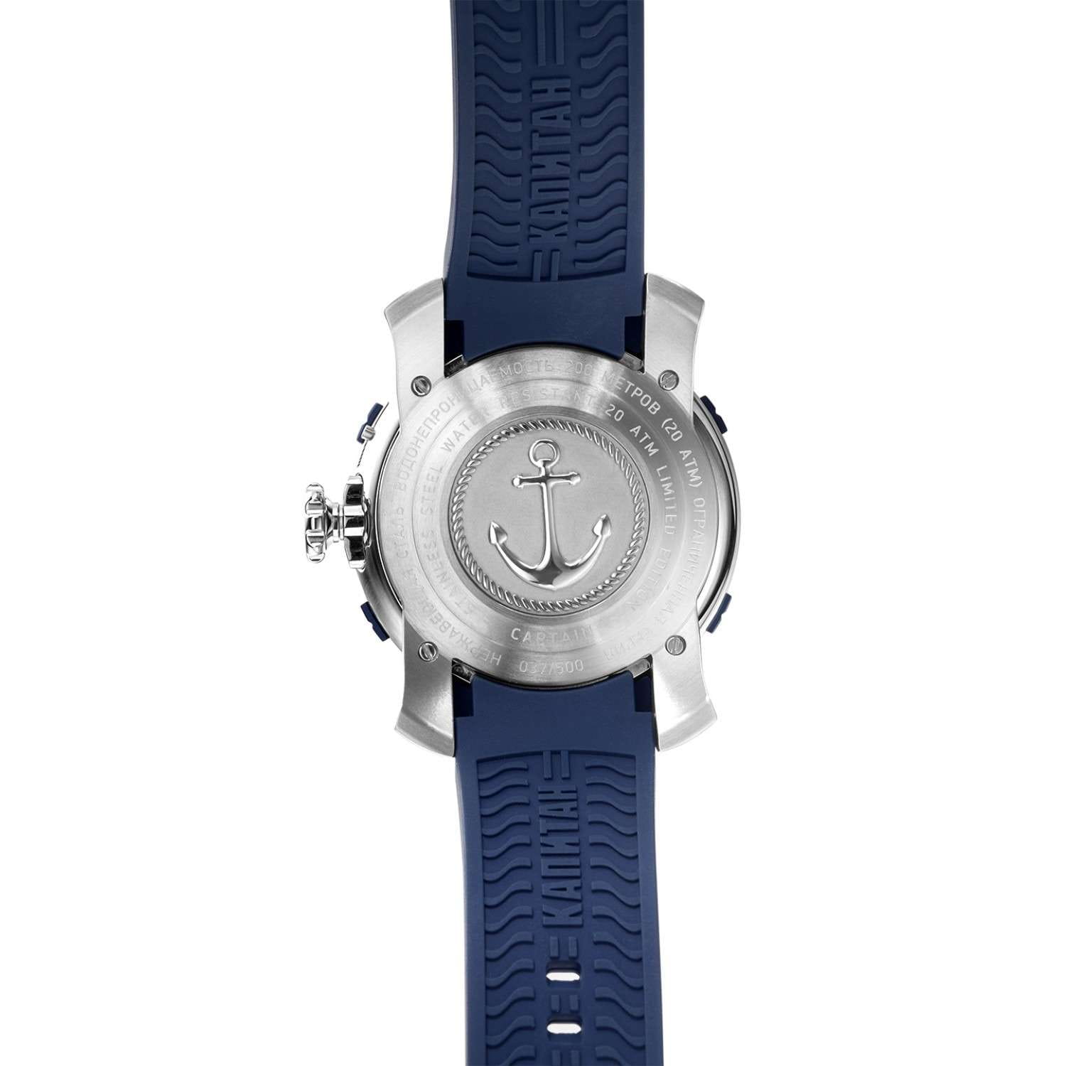 Российские механические наручные часы Слава Капитан 2470465/800-2427 — идеальный выбор для мужчин, ценящих стиль и надежность. Эта уникальная модель выпущена ограниченной серией в 500 экземпляров и сочетает в себе модный дизайн и высокое качество исполнения. Корпус часов выполнен из прочной стали и имеет диаметр 44 мм и толщину 16 мм, что придает им солидный и мужественный вид. БезельБезельВнешний ободок, закрепляющий стекло. В спортивных часах так называется поворотное кольцо с делениями на циферблате, выполняет роль таймера – замеряет отрезки времени на шкале. Неподвижный безель – элемент декора. Однонаправленно вращающийся безель на дайверских часах позволяет фиксировать моменты погружения и выныривания на поверхность. часов с IP-покрытиемIP-покрытиеМетод ионного напыления. Демонстрирует повышенную устойчивость к истиранию, окислению и химическим веществам. Под воздействием высокого давления и температуры около 1500°C молекулы металла надёжно соединяются с частицами корпуса часов. покрытием сине-серебристого цвета, выполненный в форме штурвала под стать названию коллекции "Капитан", придаёт часам неповторимый морской характер и стиль. Водозащита до 20 ATM позволяет использовать часы даже при погружении в воду, что делает их отличным выбором для активных мужчин. Зеленый циферблат с метками и сапфировое стеклоСапфировое стеклоПрочный и надёжный материал из кристалла сапфира синтетического происхождения, характеризующийся особой твёрдостью и устойчивостью к царапинам и повреждениям. обеспечивают долговечность и устойчивость к царапинам. Механический механизм "Слава 2427" с автоподзаводом и возможностью ручного подзавода гарантирует точность и надежность, а двойной календарь добавляет функциональности. На 3 часах расположено окошко с указателем даты и дня недели. Часы комплектуются прочным силиконовым ремешком со стандартной застежкой, обеспечивающим комфорт и надежную фиксацию на запястье. Задняя крышка крепится на 4-х винтах и украшена объемным изображением якоря. Индивидуальный серийный номер. Упакованы в стильную подарочную коробку из экокожи, они станут отличным подарком для любого особого случая. С часами Слава из коллекции Капитан вы подчеркнете свой статус и вкус, оставаясь верным российским традициям качества и стиля.