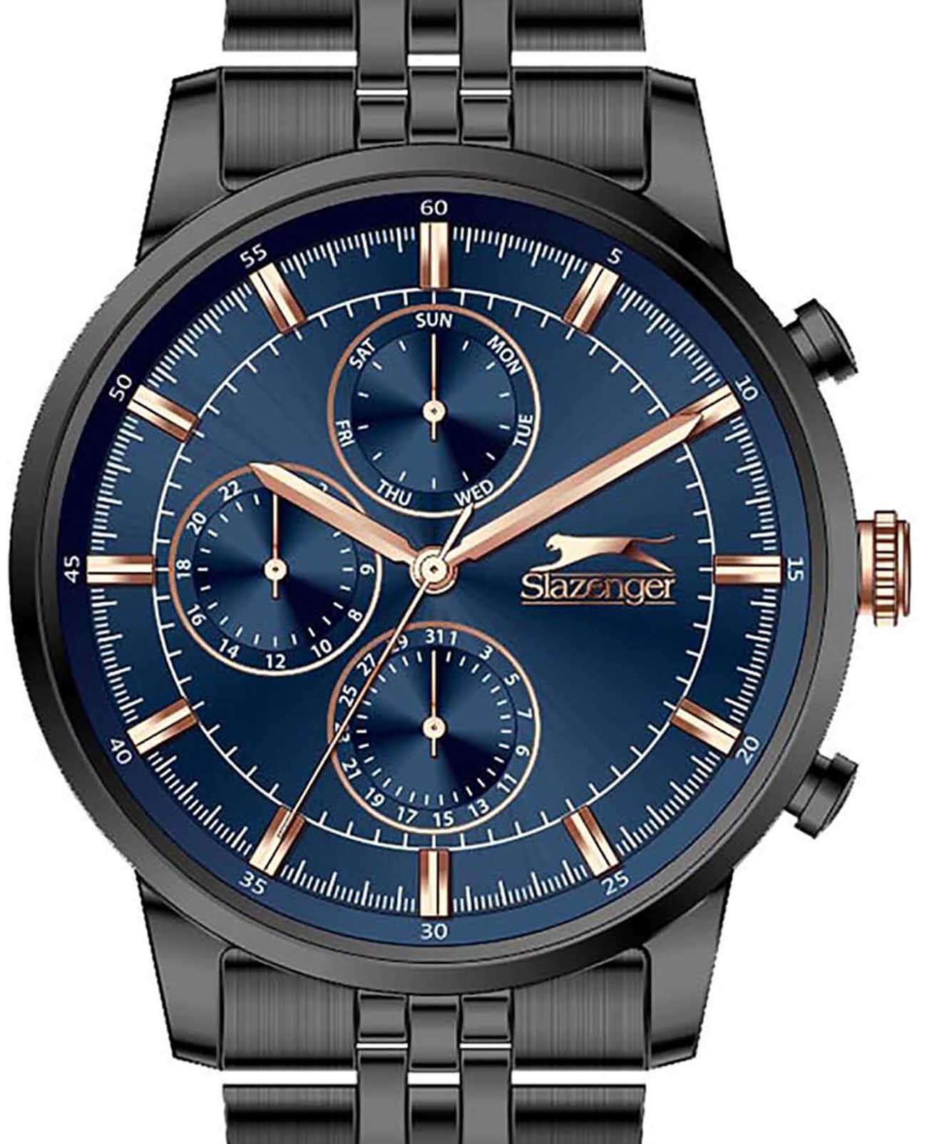 Slazenger SL.09.2036.2.01 — стильные мужские часы, сочетающие элегантный дизайн и функциональность. Корпус выполнен из суперметалла с PVD-покрытиемPVDУльтратонкое покрытие наносится в технике вакуумного напыления, сочетает в себе нитрид титана особой прочности со слоем золота или оксида хрома. Несёт в себе декоративную или защитную функцию., придающей модели прочность и долговечность. Минеральное стеклоМинеральное стеклоМинеральное стекло представляет собой искусственно выращенный минерал кварца. Такое стекло отличается особой устойчивостью к повреждениям и царапинам. Уступает по некоторым качествам сапфировому стеклу. защищает циферблат от царапин и гарантирует превосходную читаемость. Циферблат с дополнительными индикаторами подчёркивает современный стиль. Браслет из суперметалла с PVD-покрытиемPVDУльтратонкое покрытие наносится в технике вакуумного напыления, сочетает в себе нитрид титана особой прочности со слоем золота или оксида хрома. Несёт в себе декоративную или защитную функцию. обеспечивает комфортное ношение и надёжную фиксацию на запястье. Функциональность дополняется индикацией даты, дня недели и 24-часовым форматом времени, повышая удобство использования. Водонепроницаемость 50 метров делает модель устойчивой к случайным брызгам и влаге, идеально подходя для повседневного ношения.