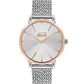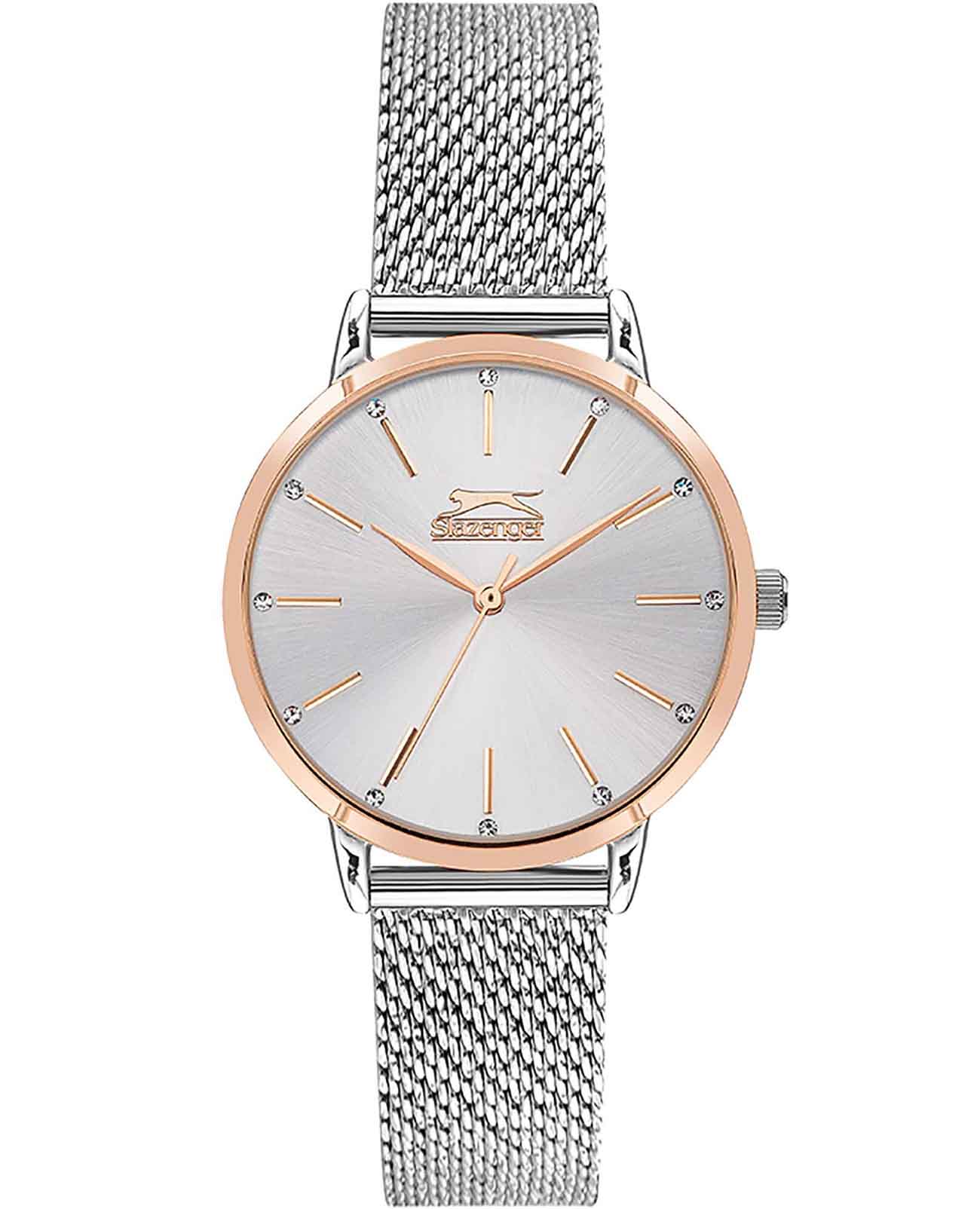 Часы Slazenger SL.09.2047.3.03 — это элегантное сочетание стиля и функциональности, созданное специально для женщин. Их изысканный серебристый циферблат и корпус из суперметалла придают часам современный и утонченный вид, а безельБезельВнешний ободок, закрепляющий стекло. В спортивных часах так называется поворотное кольцо с делениями на циферблате, выполняет роль таймера – замеряет отрезки времени на шкале. Неподвижный безель – элемент декора. Однонаправленно вращающийся безель на дайверских часах позволяет фиксировать моменты погружения и выныривания на поверхность. из суперметалла с IP-покрытиемIP-покрытиеМетод ионного напыления. Демонстрирует повышенную устойчивость к истиранию, окислению и химическим веществам. Под воздействием высокого давления и температуры около 1500°C молекулы металла надёжно соединяются с частицами корпуса часов. отлично его дополняет. Внутри скрыт надежный кварцевый механизм, который гарантирует точность и долговечность. Минеральное стеклоМинеральное стеклоМинеральное стекло представляет собой искусственно выращенный минерал кварца. Такое стекло отличается особой устойчивостью к повреждениям и царапинам. Уступает по некоторым качествам сапфировому стеклу. защищает часы от царапин, а украшение из фианитов добавляет изысканный акцент. Браслет из суперметалла с миланским плетением, оснащенный раскладным замкомРаскладной замокДанный вариант застежки используется только на часах с металлическим браслетом. Отличительная особенность такого крепления в том, что длина браслета становится универсальной и вы можете самостоятельно отрегулировать нужный вам размер – застежка просто двигается по браслету часов., подчеркивает женственность дизайна и обеспечивает комфорт в носке. Диаметр корпуса составляет 35 мм, а толщина — 9 мм, что делает их идеальным аксессуаром для любой стильной женщины. Водозащита уровня 3 ATM позволяет не беспокоиться о случайных брызгах.