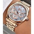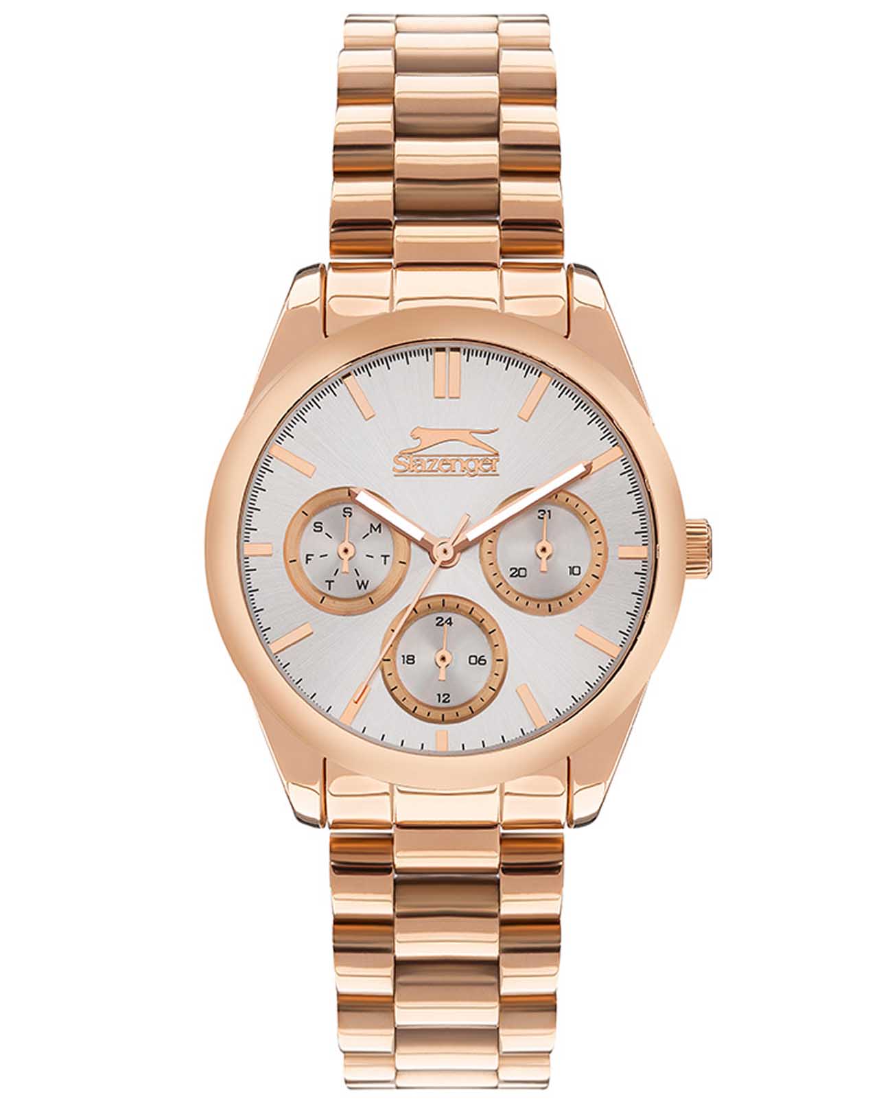 Женские наручные часы Slazenger SL.09.2063.4.02 сочетают в себе классический дизайн и высокое качество исполнения. Модель обладает круглым корпусом диаметром 36 мм, изготовленным из суперметалла с золотистым IP-покрытиемIP-покрытиеМетод ионного напыления. Демонстрирует повышенную устойчивость к истиранию, окислению и химическим веществам. Под воздействием высокого давления и температуры около 1500°C молекулы металла надёжно соединяются с частицами корпуса часов. покрытием, что обеспечивает устойчивость к внешним воздействиям. Браслет выполнен из суперметалла с IP-покрытиемIP-покрытиеМетод ионного напыления. Демонстрирует повышенную устойчивость к истиранию, окислению и химическим веществам. Под воздействием высокого давления и температуры около 1500°C молекулы металла надёжно соединяются с частицами корпуса часов. на раскладной застёжкеРаскладная застёжкаТакой тип застёжки используется только на браслетах из металла. Она никогда не раскрывается полностью, происходит разделение на 2 и более частей. Раскладывающая застёжка снизит вероятность потери часов к минимуму.. Белый циферблат украшен логотипом бренда и метками времени. Имеются дополнительные малые циферблаты для отображения даты, дня недели и текущего времени в 24-часовом формате. Для защиты используется минеральное стеклоМинеральное стеклоМинеральное стекло представляет собой искусственно выращенный минерал кварца. Такое стекло отличается особой устойчивостью к повреждениям и царапинам. Уступает по некоторым качествам сапфировому стеклу., обеспечивающее прочную защиту от царапин. Стрелки и метки имеют люминесцентное покрытиеЛюминесцентное покрытиеПозволяет считывать показания времени в темноте. Производители наносят на стрелки, часовые индексы, безель или поверхность циферблата светонакопительный состав, дающий холодное свечение., что позволяет легко читать время в темноте. Часы работают на японском кварцевом механизме, который обеспечивает точность хода без необходимости подзаводки. Водонепроницаемость часов составляет 3 атмосферы (WR30), что позволяет защитить корпус от случайных брызг или капель дождя.