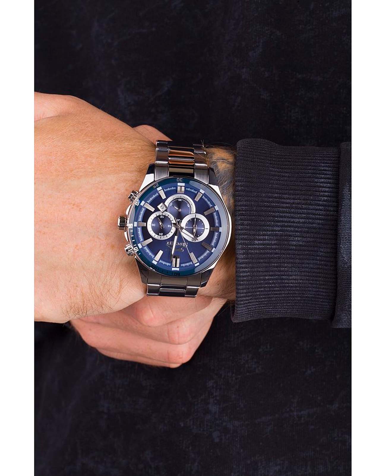 Мужские наручные часы Slazenger SL.09.2078.2.04 — это стильный и функциональный аксессуар, сочетающий в себе классический дизайн и современные технологии. Модель обладает круглым корпусом диаметром 48 мм, выполненным из прочного сплава суперметалла, что обеспечивает высокую устойчивость к внешним воздействиям. БезельБезельВнешний ободок, закрепляющий стекло. В спортивных часах так называется поворотное кольцо с делениями на циферблате, выполняет роль таймера – замеряет отрезки времени на шкале. Неподвижный безель – элемент декора. Однонаправленно вращающийся безель на дайверских часах позволяет фиксировать моменты погружения и выныривания на поверхность. с IP-покрытиемIP-покрытиеМетод ионного напыления. Демонстрирует повышенную устойчивость к истиранию, окислению и химическим веществам. Под воздействием высокого давления и температуры около 1500°C молекулы металла надёжно соединяются с частицами корпуса часов.. Браслет изготовлен из нержавеющей стали с раскладной застежкойРаскладная застёжкаТакой тип застёжки используется только на браслетах из металла. Она никогда не раскрывается полностью, происходит разделение на 2 и более частей. Раскладывающая застёжка снизит вероятность потери часов к минимуму., гарантирующей удобство и надежность при ношении. Циферблат синего цвета украшен стрелками с люминесцентным покрытиемЛюминесцентное покрытиеПозволяет считывать показания времени в темноте. Производители наносят на стрелки, часовые индексы, безель или поверхность циферблата светонакопительный состав, дающий холодное свечение., что обеспечивает читаемость времени даже в условиях слабого освещения. Для защиты циферблата используется минеральное стеклоМинеральное стеклоМинеральное стекло представляет собой искусственно выращенный минерал кварца. Такое стекло отличается особой устойчивостью к повреждениям и царапинам. Уступает по некоторым качествам сапфировому стеклу., устойчивое к царапинам и повреждениям. Часы оснащены кварцевым механизмом, обеспечивающим точность хода с погрешностью не более ±15 секунд в месяц. Модель также включает функции отображения даты, 24-часового формата времени и хронографаХронографФункция позволяет измерять отрезки времени с особой точностью: часы, минуты, секунды. Верным признаком хронографа является наличие на циферблате 3 дополнительных окошек-счётчиков., что делает ее практичной для повседневного использования. Водонепроницаемость часов составляет 5 атмосфер (50 метров), что позволяет использовать их при плавании, но не рекомендуется для дайвинга. Вес модели — 158 грамм, что обеспечивает комфортное ношение. Slazenger SL.09.2078.2.04 — это универсальный аксессуар, который подчеркнет стиль и практичность в любом образе мужчины.