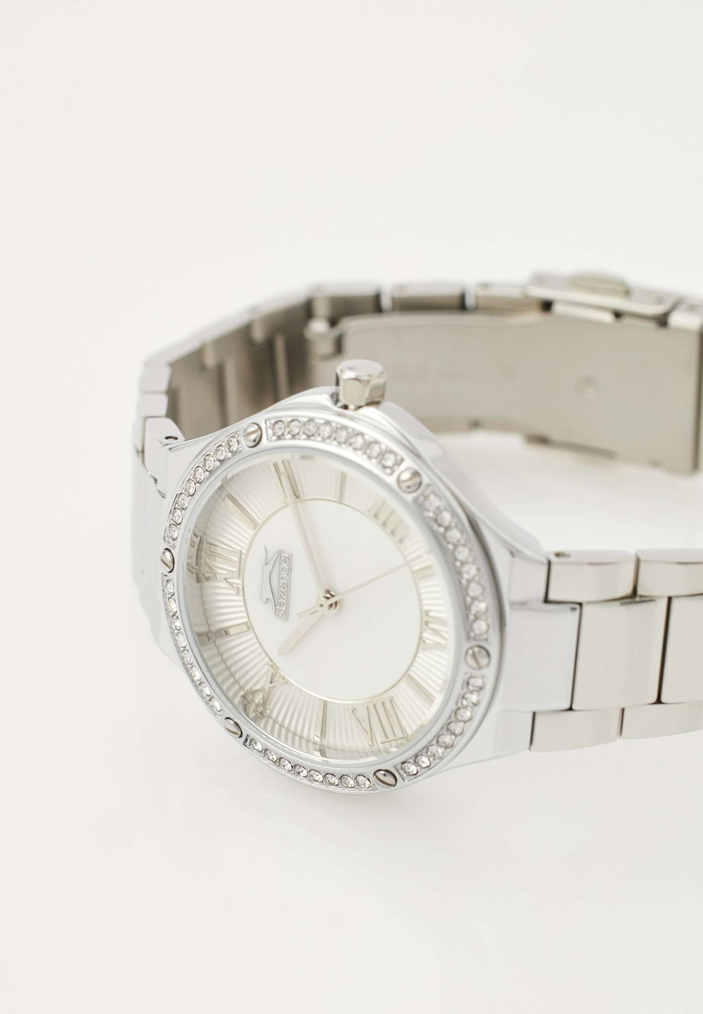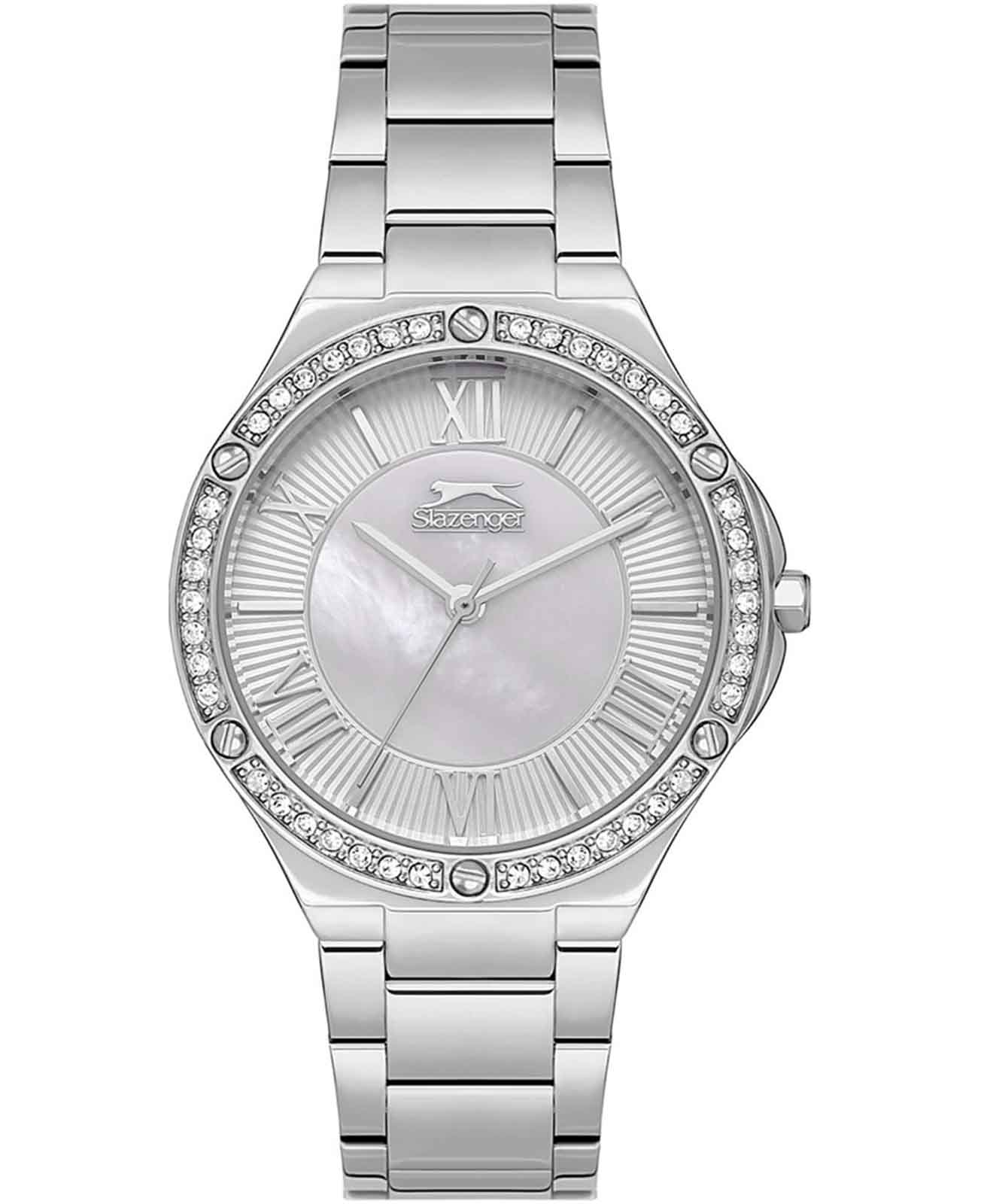 Часы Slazenger SL.09.2225.3.01 — это изысканный аксессуар, который подчеркнёт ваш стиль и индивидуальность. Модель оснащена надёжным кварцевым механизмом, обеспечивающим точность хода. Корпус из прочного металла диаметром 35 мм, а безельБезельВнешний ободок, закрепляющий стекло. В спортивных часах так называется поворотное кольцо с делениями на циферблате, выполняет роль таймера – замеряет отрезки времени на шкале. Неподвижный безель – элемент декора. Однонаправленно вращающийся безель на дайверских часах позволяет фиксировать моменты погружения и выныривания на поверхность. украшен сияющими кристаллами. Перламутровый циферблат придаёт часам особый шарм. Металлический серебристый браслет с удобной раскладной застёжкойРаскладная застёжкаТакой тип застёжки используется только на браслетах из металла. Она никогда не раскрывается полностью, происходит разделение на 2 и более частей. Раскладывающая застёжка снизит вероятность потери часов к минимуму. гармонично дополняет изящный дизайн. Минеральное стеклоМинеральное стеклоМинеральное стекло представляет собой искусственно выращенный минерал кварца. Такое стекло отличается особой устойчивостью к повреждениям и царапинам. Уступает по некоторым качествам сапфировому стеклу. защищает циферблат от царапин, а водозащита уровня WR 30 позволяет не беспокоиться о случайных каплях воды. Заводная головка оснащена специальной защитой. Эти часы станут прекрасным выбором для тех, кто ценит сочетание элегантности и функциональности.