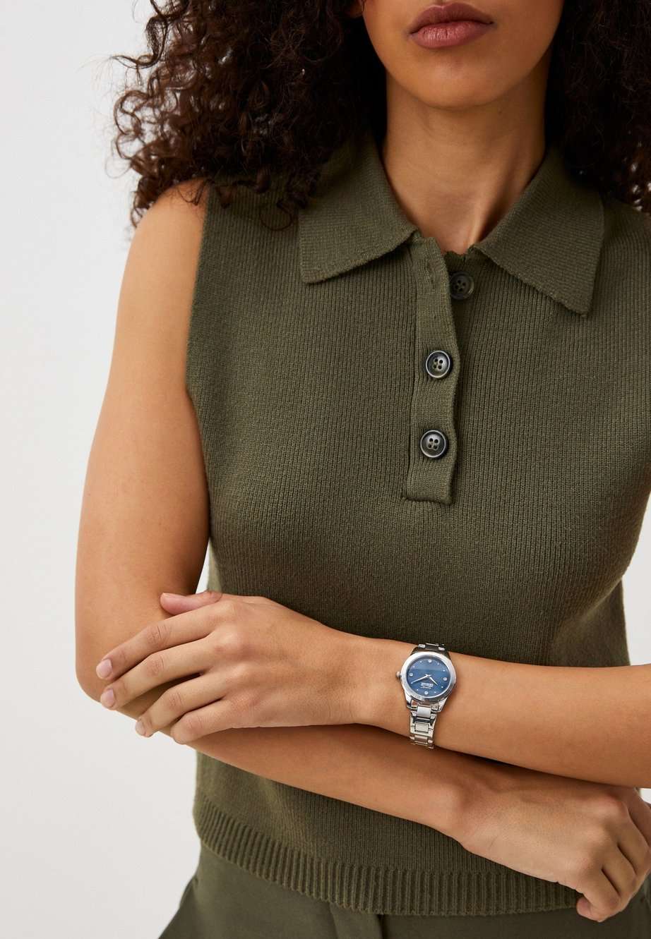 Часы Slazenger SL.09.2253.3.05 — это стильная и элегантная модель, созданная для тех, кто ценит утонченность и надежность. Корпус выполнен из прочного металла, а изящный серебристый браслет оснащён удобной раскладной застёжкойРаскладная застёжкаТакой тип застёжки используется только на браслетах из металла. Она никогда не раскрывается полностью, происходит разделение на 2 и более частей. Раскладывающая застёжка снизит вероятность потери часов к минимуму.. Минеральное стеклоМинеральное стеклоМинеральное стекло представляет собой искусственно выращенный минерал кварца. Такое стекло отличается особой устойчивостью к повреждениям и царапинам. Уступает по некоторым качествам сапфировому стеклу. защищает синий циферблат, украшенный сияющими кристаллами, придающими аксессуару особый шарм. Кварцевый механизм обеспечивает точность хода, а водозащита класса WR 30 позволяет не беспокоиться о случайных брызгах. Диаметр корпуса составляет 33 мм, ширина браслета — 16 мм, толщина корпуса — 8 мм, что делает эти часы аккуратными и комфортными для повседневной носки. Модель весит 70 грамм. Часы прекрасно дополнят как деловой, так и повседневный образ, подчеркивая индивидуальность своей обладательницы.