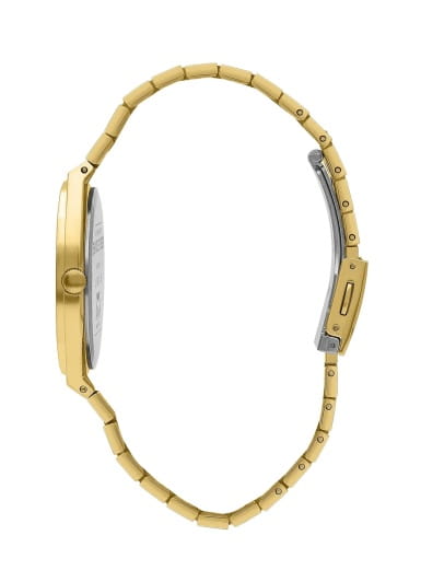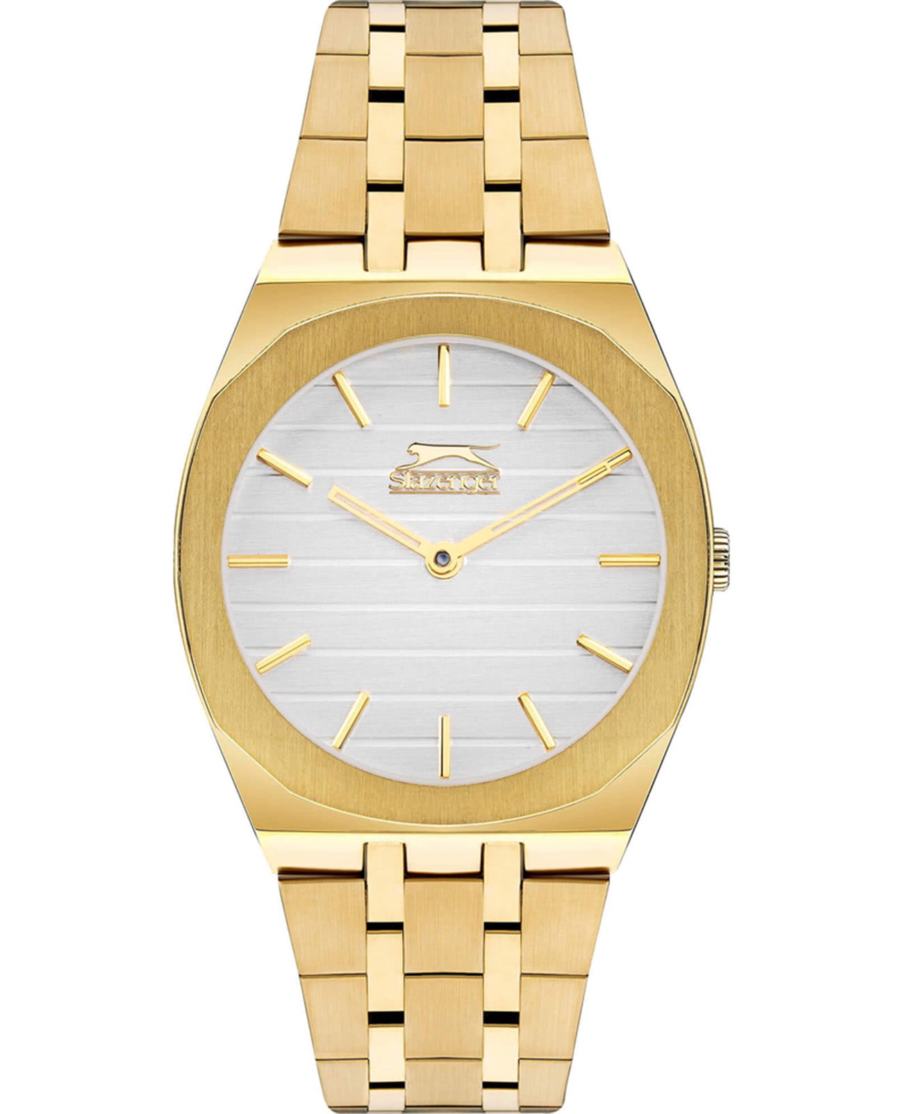 Женские кварцевые часы Slazenger SL.09.2311.3.04 — это элегантный и стильный аксессуар, идеально дополняющий любой образ. Корпус и браслет выполнены из суперметалла с IP-покрытиемIP-покрытиеМетод ионного напыления. Демонстрирует повышенную устойчивость к истиранию, окислению и химическим веществам. Под воздействием высокого давления и температуры около 1500°C молекулы металла надёжно соединяются с частицами корпуса часов., защищён минеральным стекломМинеральное стеклоМинеральное стекло представляет собой искусственно выращенный минерал кварца. Такое стекло отличается особой устойчивостью к повреждениям и царапинам. Уступает по некоторым качествам сапфировому стеклу.. Циферблат белого цвета оформлен в классическом стиле, стрелки с фигурными вырезами. Браслет золотистого цвета фиксируется на раскладной застёжкеРаскладная застёжкаТакой тип застёжки используется только на браслетах из металла. Она никогда не раскрывается полностью, происходит разделение на 2 и более частей. Раскладывающая застёжка снизит вероятность потери часов к минимуму., обеспечивая удобство и надёжность ношения. Водонепроницаемость 30 м позволяет использовать часы в повседневных условиях, защищая от случайных брызг и капель дождя. Модель сочетает в себе лёгкость, прочность и изысканный внешний вид.
