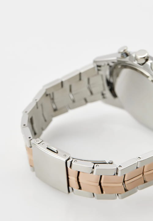 Мужские кварцевые часы Slazenger SL.09.2312.2.02 — это выразительный и функциональный аксессуар, сочетающий прочность, стиль и насыщенную комплектацию. Браслет выполнены из суперметалла с IP-покрытиемIP-покрытиеМетод ионного напыления. Демонстрирует повышенную устойчивость к истиранию, окислению и химическим веществам. Под воздействием высокого давления и температуры около 1500°C молекулы металла надёжно соединяются с частицами корпуса часов., корпус из суперметалла оснащён минеральным стекломМинеральное стеклоМинеральное стекло представляет собой искусственно выращенный минерал кварца. Такое стекло отличается особой устойчивостью к повреждениям и царапинам. Уступает по некоторым качествам сапфировому стеклу.. Циферблат чёрного цвета оформлен с вынесенными малыми циферблатами для индикации дня недели, даты и времени в 24-часовом формате. Стрелки и метки оснащены люминесцентным покрытиемЛюминесцентное покрытиеПозволяет считывать показания времени в темноте. Производители наносят на стрелки, часовые индексы, безель или поверхность циферблата светонакопительный состав, дающий холодное свечение., обеспечивающим хорошую читаемость в темноте. Заводная головка снабжена защитой, а задняя крышка — завинчивающаяся, что повышает надёжность конструкции. Браслет комбинированного цвета фиксируется на раскладной застёжкеРаскладная застёжкаТакой тип застёжки используется только на браслетах из металла. Она никогда не раскрывается полностью, происходит разделение на 2 и более частей. Раскладывающая застёжка снизит вероятность потери часов к минимуму., обеспечивая удобство и безопасность ношения. Водонепроницаемость 50 м позволяет использовать часы в повседневных условиях, защищая от случайных брызг и капель дождя. Модель подчёркивает индивидуальность владельца и идеально подходит как для повседневного, так и для делового образа.