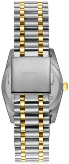 Женские кварцевые часы Slazenger SL.09.2343.4.03 – это сочетание элегантности, современного стиля и надёжности. Изящный корпус из суперметалла серебристого цвета, диаметром 36 мм и толщиной 10.5 мм, подчёркивает утончённость модели и делает их идеальным аксессуаром для любой ситуации – будь то деловая встреча, романтический вечер или повседневные выходы. Циферблат надёжно защищён минеральным стекломМинеральное стеклоМинеральное стекло представляет собой искусственно выращенный минерал кварца. Такое стекло отличается особой устойчивостью к повреждениям и царапинам. Уступает по некоторым качествам сапфировому стеклу., которое устойчиво к механическим повреждениям и сохраняет кристальную прозрачность. Рифленый неподвижный безельБезельВнешний ободок, закрепляющий стекло. В спортивных часах так называется поворотное кольцо с делениями на циферблате, выполняет роль таймера – замеряет отрезки времени на шкале. Неподвижный безель – элемент декора. Однонаправленно вращающийся безель на дайверских часах позволяет фиксировать моменты погружения и выныривания на поверхность. с IP-покрытиемIP-покрытиеМетод ионного напыления. Демонстрирует повышенную устойчивость к истиранию, окислению и химическим веществам. Под воздействием высокого давления и температуры около 1500°C молекулы металла надёжно соединяются с частицами корпуса часов. золотистого цвета. Браслет из суперметалла с частичным IP-покрытиемIP-покрытиеМетод ионного напыления. Демонстрирует повышенную устойчивость к истиранию, окислению и химическим веществам. Под воздействием высокого давления и температуры около 1500°C молекулы металла надёжно соединяются с частицами корпуса часов. удобно облегает запястье и фиксируется с помощью раскладной застёжкиРаскладная застёжкаТакой тип застёжки используется только на браслетах из металла. Она никогда не раскрывается полностью, происходит разделение на 2 и более частей. Раскладывающая застёжка снизит вероятность потери часов к минимуму., обеспечивая надёжность и комфорт в повседневном ношении. Утончённый стиль, внимание к деталям и практичность делают эту модель идеальным выбором для современных женщин, ценящих эстетику и функциональность. Вынесенный циферблат с 24-х часовым указателем времени. Водозащита до 30 метров позволит защитить корпус от случайных брызг или капель дождя.