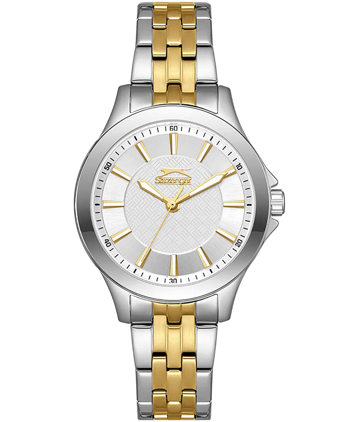 Женские кварцевые часы Slazenger SL.09.2349.3.02 – это сочетание элегантности, современного стиля и надёжности. Изящный корпус из суперметалла серебристого цвета, диаметром 36 мм и толщиной 9 мм, подчёркивает утончённость модели и делает их идеальным аксессуаром для любой ситуации – будь то деловая встреча, романтический вечер или повседневные выходы. Циферблат надёжно защищён минеральным стекломМинеральное стеклоМинеральное стекло представляет собой искусственно выращенный минерал кварца. Такое стекло отличается особой устойчивостью к повреждениям и царапинам. Уступает по некоторым качествам сапфировому стеклу., которое устойчиво к механическим повреждениям и сохраняет кристальную прозрачность. Браслет из суперметалла с IP-покрытиемIP-покрытиеМетод ионного напыления. Демонстрирует повышенную устойчивость к истиранию, окислению и химическим веществам. Под воздействием высокого давления и температуры около 1500°C молекулы металла надёжно соединяются с частицами корпуса часов. золотистого цвета удобно облегает запястье и фиксируется с помощью раскладной застёжкиРаскладная застёжкаТакой тип застёжки используется только на браслетах из металла. Она никогда не раскрывается полностью, происходит разделение на 2 и более частей. Раскладывающая застёжка снизит вероятность потери часов к минимуму., обеспечивая надёжность и комфорт в повседневном ношении. Утончённый стиль, внимание к деталям и практичность делают эту модель идеальным выбором для современных женщин, ценящих эстетику и функциональность. Стрелки и метки покрыты люминесцентным покрытиемЛюминесцентное покрытиеПозволяет считывать показания времени в темноте. Производители наносят на стрелки, часовые индексы, безель или поверхность циферблата светонакопительный состав, дающий холодное свечение., обеспечивающим отличную читаемость в темноте. Водозащита до 30 метров позволит защитить корпус от случайных брызг или капель дождя.