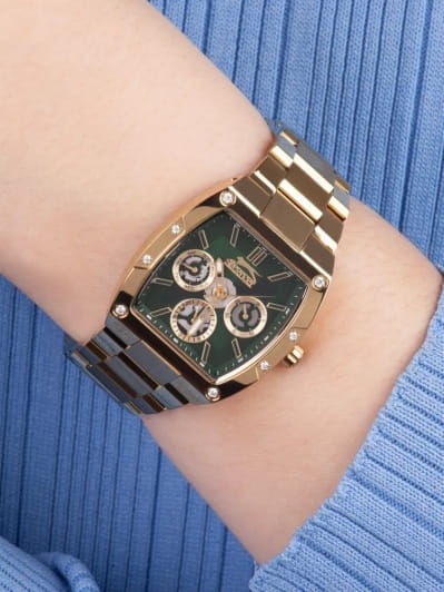Женские кварцевые часы Slazenger SL.09.2357.4.05 – это сочетание элегантности, современного стиля и надёжности. Изящный корпус из суперметалла с IP-покрытиемIP-покрытиеМетод ионного напыления. Демонстрирует повышенную устойчивость к истиранию, окислению и химическим веществам. Под воздействием высокого давления и температуры около 1500°C молекулы металла надёжно соединяются с частицами корпуса часов. золотистого цвета, размером 32 мм х 33 мм и толщиной 10 мм, подчёркивает утончённость модели и делает их идеальным аксессуаром для любой ситуации – будь то деловая встреча, романтический вечер или повседневные выходы. Циферблат надёжно защищён минеральным стекломМинеральное стеклоМинеральное стекло представляет собой искусственно выращенный минерал кварца. Такое стекло отличается особой устойчивостью к повреждениям и царапинам. Уступает по некоторым качествам сапфировому стеклу., которое устойчиво к механическим повреждениям и сохраняет кристальную прозрачность. Браслет из суперметалла с IP-покрытиемIP-покрытиеМетод ионного напыления. Демонстрирует повышенную устойчивость к истиранию, окислению и химическим веществам. Под воздействием высокого давления и температуры около 1500°C молекулы металла надёжно соединяются с частицами корпуса часов. удобно облегает запястье и фиксируется с помощью раскладной застёжкиРаскладная застёжкаТакой тип застёжки используется только на браслетах из металла. Она никогда не раскрывается полностью, происходит разделение на 2 и более частей. Раскладывающая застёжка снизит вероятность потери часов к минимуму., обеспечивая надёжность и комфорт в повседневном ношении. Утончённый стиль, внимание к деталям и практичность делают эту модель идеальным выбором для современных женщин, ценящих эстетику и функциональность. Стрелки и метки покрыты люминесцентным покрытиемЛюминесцентное покрытиеПозволяет считывать показания времени в темноте. Производители наносят на стрелки, часовые индексы, безель или поверхность циферблата светонакопительный состав, дающий холодное свечение., обеспечивающим отличную читаемость в темноте. Вынесенный циферблат с 24-х часовым указателем времени. Водозащита до 30 метров позволит защитить корпус от случайных брызг или капель дождя.